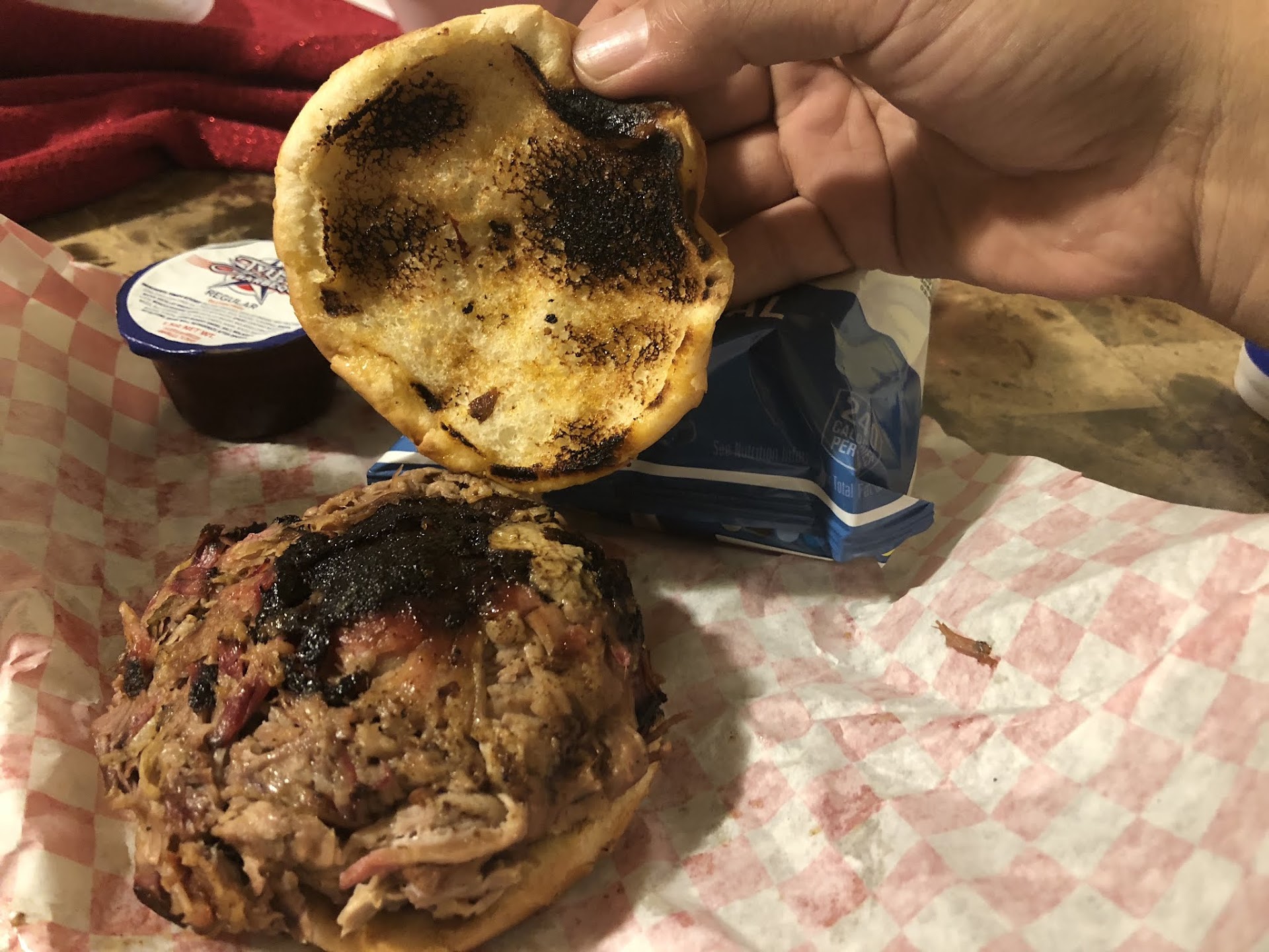 The brisket was dry and super rubbery. It did detach as it should when pulled apart. The smoke ring was barely visible. The outer skin was my favorite because of how crunchy it was, but the flavor of the brisket was not good. The pork sandwich was dry and I had to add barbecue sauce to moisten it up. The sauce provided did not help the flavor. I ended up using a different kind. The ribs were the best part. They were very juicy and had a decent flavor.