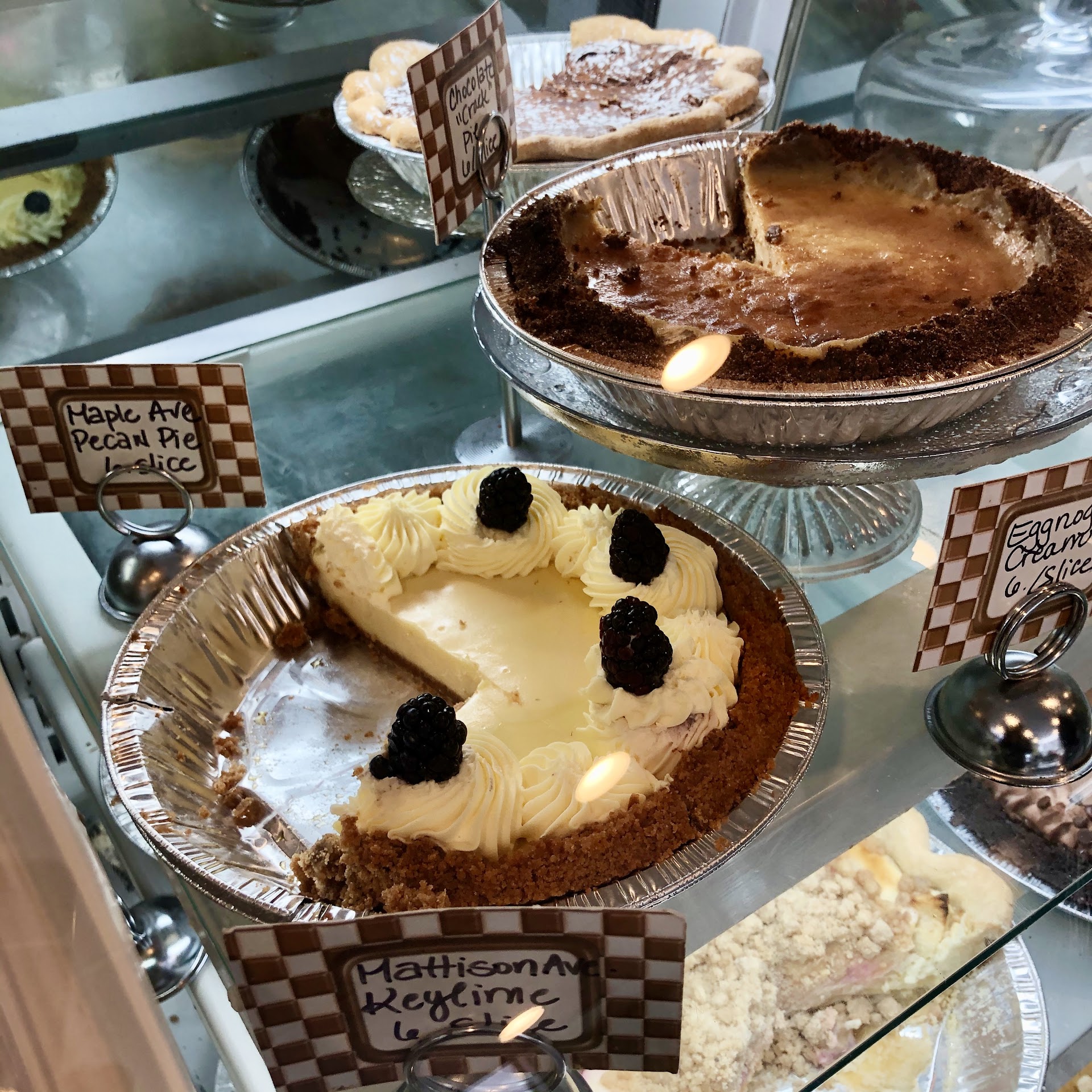 We found ourselves in the area for other entertainment purposes. Prior to leaving Ambler, we developed a hankering for pie. Upon entering Pie and Plate (for short), we were pleasantly greeted by the staff. It was our first time to the adorable little bakery restaurant, adorned with soft pastel blues, and delicate decorations. Soft edges and nothing too hard on the eyes. We purchased an entire set of pieces from the display to assemble an entire pie. Three key lime slices, three lemon ginger slices, and one cup of caramel hot chocolate (which was to die for). The pies were properly adorned in whipped cream and berries. The pies were absolutely delicious, but as most pie lovers will tell you, it is the crust that completes the entire ensemble. Pie and Plate delivers the goods with a flaky yet most crust that perfectly complements the sweetness of the pies. If you are a pie lover, please do yourself a favor and visit...