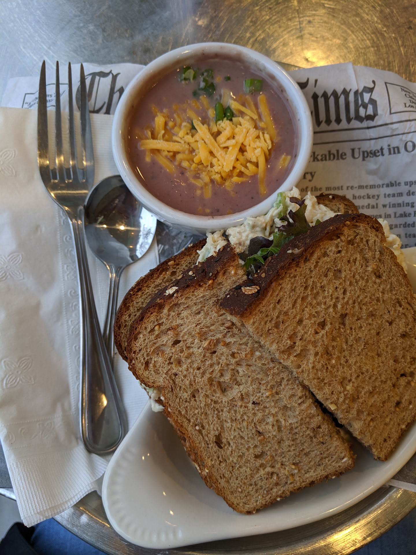 If you buy a pie to go you should be satisfied except for the almost $30 per pie price tag. I like the idea of supporting small and local businesses but too much competition to be this pricey, poor eat- in service or lack of and below average eat in food. Hated the set-up of the cafe. Not clear if you sit down and get table service or order at the counter. FYI...it is the latter. Now for the seating, mismatched furniture and terrible lay out make for a downright unpleasant dining experience. My friend and I first sat at a counter height table for five due to the lack of seating for two. Stool was uncomfortable. To get a table and chairs, we waited until someone left the table that barely fit or two orders. My plastic chair was not comfy as I enviously looked at the large, white, oversized, soft seats next to me. Very loud space. Couldn't hear my friend and the very close seating didn't help. Food was delivered to our table. Minus the coffee I ordered. Oh and it was at that time they decided to remove the dishes from the previous customers. So coffee arrived. In house blend and pretty good. But first we needed cream' sugar, stirrers...you know...coffee basics. So you must look around the cafe for that (it is at the end of the counter in an effort to help you not wander around cluelessly like myself). Oh, BTW, look in the glass fridge behind you for milk, cream, etc. Am I in someone's house or what? Not verve sure how I found the dairy. So now for the food. Small quiche for Mr friend and " pot pie" for me. Both come with "mixed fruit". She got mostly honeydew and I got watermelon...so we shared. My pot pie is a small under baked shell with scrambled eggs and turkey bacon. A square of crust comes dipped into the egg mixture for the top crust? Pot pie reinvented? Doesn't work. The spinach quiche is unremarkable. The spinach is laid across the top if the ingredients and not mixed into the egg mixture. So what is going on here. Crust and quiche baked in advance. Ingredients then made to order but putting scrambled eggs in a single shell is not pot pie. Laying spinach across the top of a quiche isn't making the grade for a spinach quiche. Service, food and ambiance in need of...