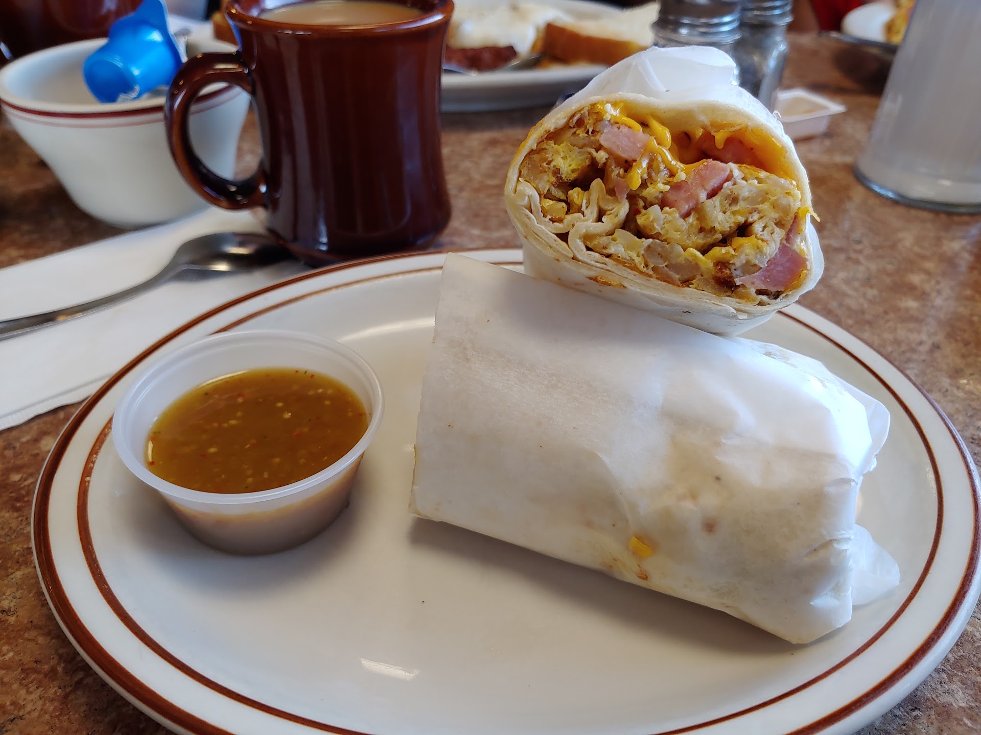 Β Β Β Read moreHaving lived in the area for nearly two decades, this place holds a lot of charm for me personally. One of our favorite things to do is come here for Sunday brunch. I love the bottomless coffee and the ability to eat and spend time with family. The food is simple and good and the environment and staff are welcoming, which adds to it's charm. They will accommodate large groups or small. It's menu is very much carries the vibe of small town America. The walls are adorned with artwork from local artists, which is also charming. The food portions are generous and fairly priced!