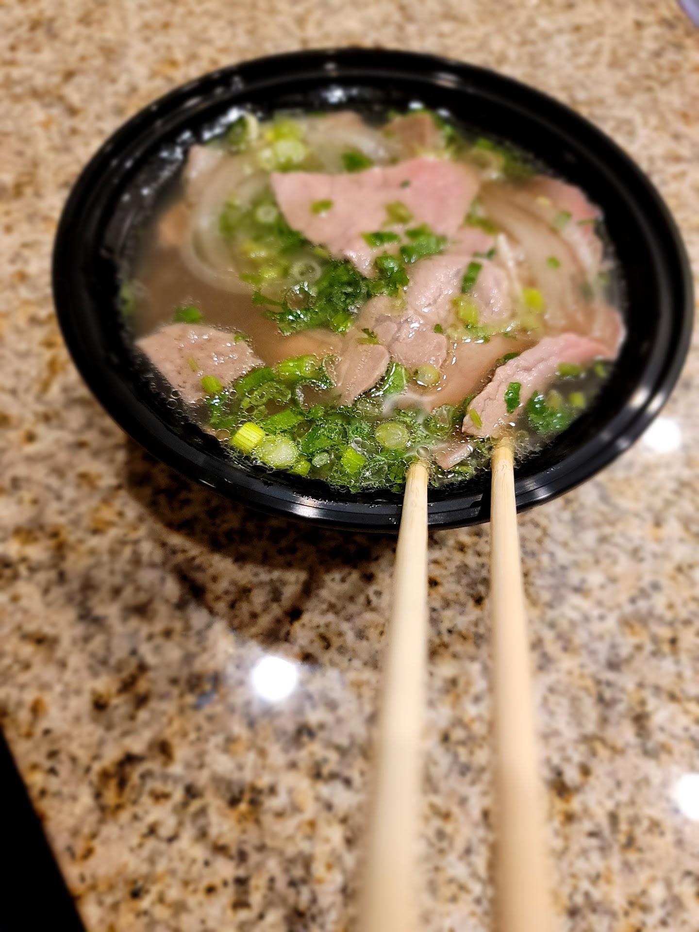 It had a clean atmosphere inside and the employees were welcoming. We ordered two vermicelli noodles, 1 pho soup, and a peach boba to go. The food came out quickly as they are a semi-fast food joint (think Cafe Rio or Mod Pizza).