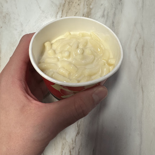 Now, the mac & cheese. It was colder than room temperature and it was eaten 10 minutes after it was “prepared”. Not to mention the cup was only filled 2/3 of the way. (Had to microwave it and just give it to my kid, wasn’t enough to satisfy a three year-old)