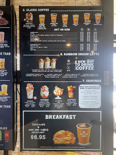 Read moreI'm a long-time frequent customer at Don Joaquin's, so it was fun to see a drink shop open up inside. I read a few reviews and everyone loved the coffee, so I had high hopes. My family loves bobas, so we got 3 taro bobas. The pictures and description on the menu show the boba included in the drinks (see photos), but I was charged $0.85 extra per drink to include what should have been standard??? Anyway, the bottom 2" of the drink tastes like pure brown sugar syrup. It's so sickly sweet, I can't drink it. All 3 of our drinks were the same way. I'd like to try the coffee since it has such good reviews, but I'll never order the...