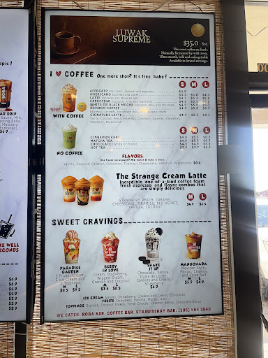 The drinks have potential to be good. But every worker does the drinks differently so you might have one girl that makes an amazing drink and then the drink will be different the next time you go. For example I love the random crème latte, but tastes different every time. Like today the girl who I think is newer because I’ve never seen her before filled up the cup all the way to the top with milk then, whipped cream and then poured a little bit of coffee foam on top. I mixed it and it was literally still white, not a lot of coffee. She offered to make it again but literally just poured some of the drink out and added more coffee foam. The ice was melted already too. It’s a cute shop but there needs to be training on how to...