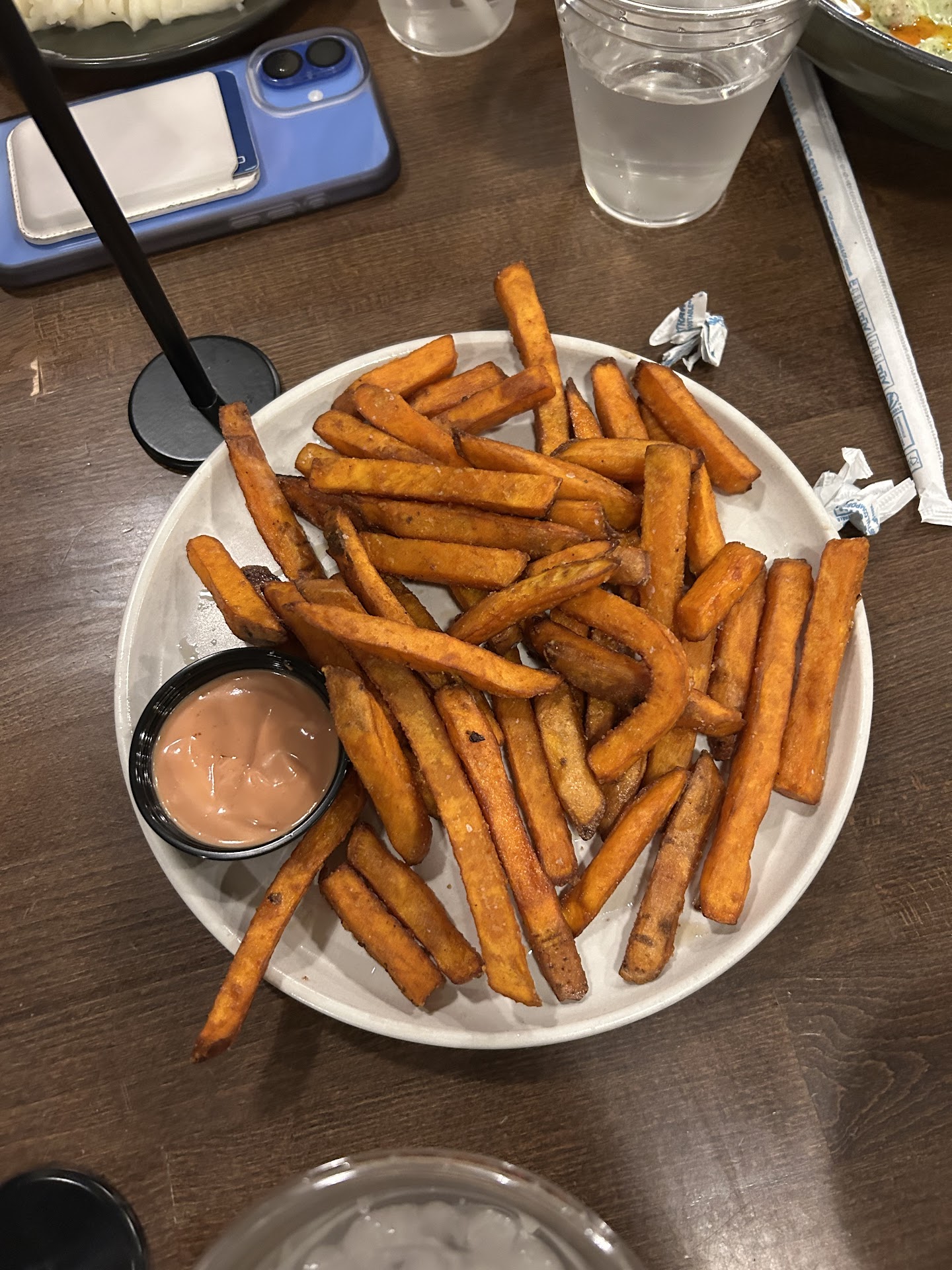 We were trying to remain hopeful that the food would be good but it was just okay. We probably could have cooked some of the food better ourselves. We ordered the tri-tip, the steak tacos with sweet potato fries, the pork tenderloin, mashed potatoes and the pesto gnocchi. The steak tacos were pretty good and the sweet potato fries that came with it were crispy and well seasoned. The tri-tip was good was a little cold and the mashed potatoes tasted like they were instant potatoes. The pork tenderloin was already but very bland and the risotto tasted like grits, just very underwhelming for the price. The pesto gnocchi was flavorful and tasted good.