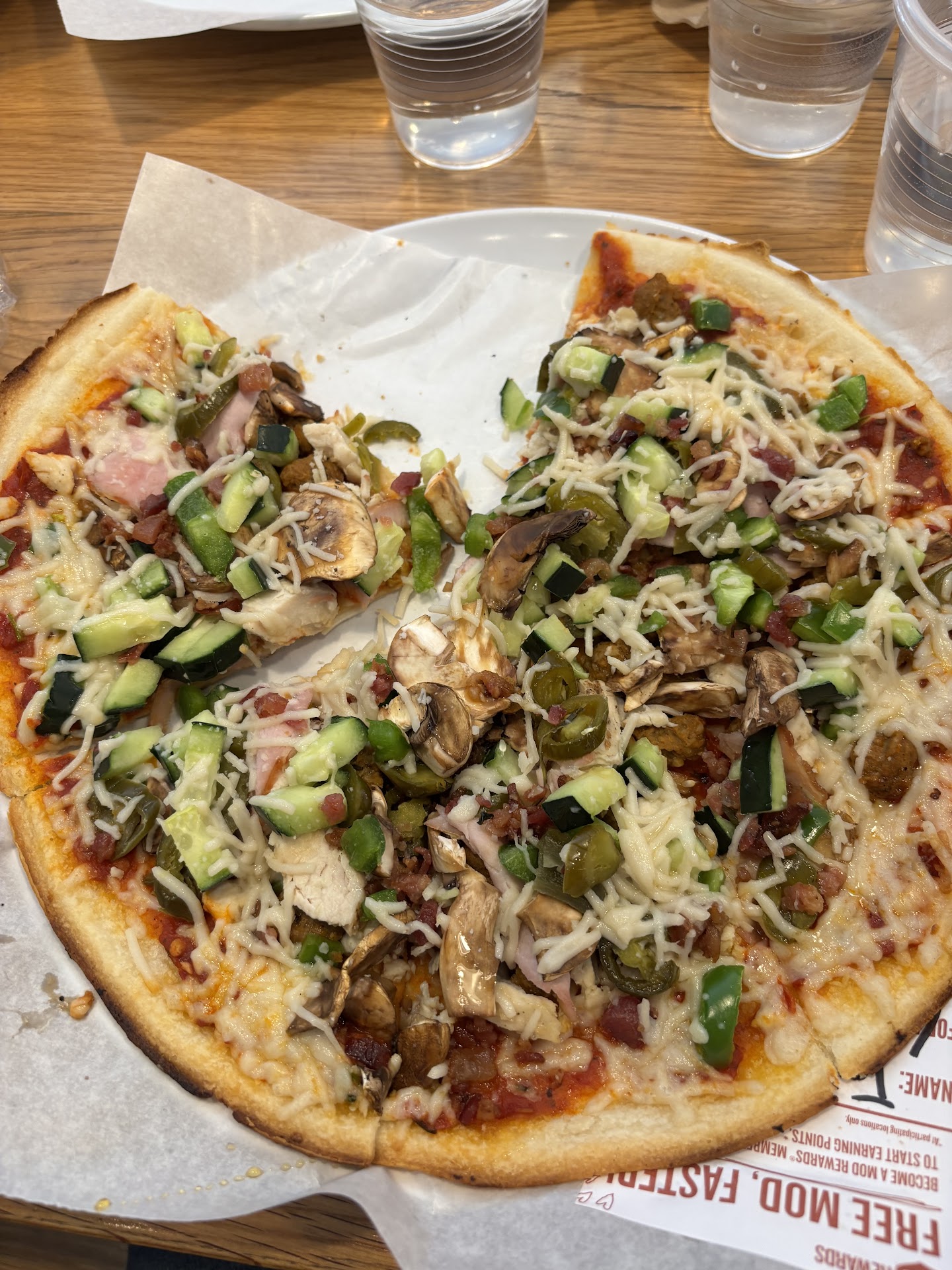 Fourth, TASTE: It was DELICIOUS! I worked at a fancier pizza place in high school, so I understand the difference between low quality ingredients and high quality ingredients. MOD is definitely high quality.