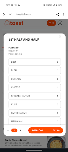 To make it clear, even that's true, that's not obvious in the "preferred online delivery method" set up for ordering online unless you deliberately scroll past the option to go half/half to carefully read the description of what the word "BBQ" means specifically at this restaurant.