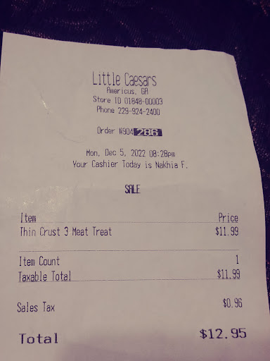 Ā Ā Ā Read moreLast Thursday was my 3rd time stopping by this location in a month and was also my 3rd time having to wait over 30 minutes for two regular pizzas. The other two times I was waiting for about an hour. There was hardley anyone here this last time and my order sat on the counter for half an hour because they asked me to pull around, but then forgot what I was driving. All of the workers were on their phones when I finally went in to see about my food. They were so busy on their phones they hardley payed attention to me and acted rude when I was upset about their horrible service. I highly recommend NOT coming here, I know I wonāt be again, which is disappointing because Iāve always enjoyed little ceasars. I truly hope the owner can find decent management and staff before this place...