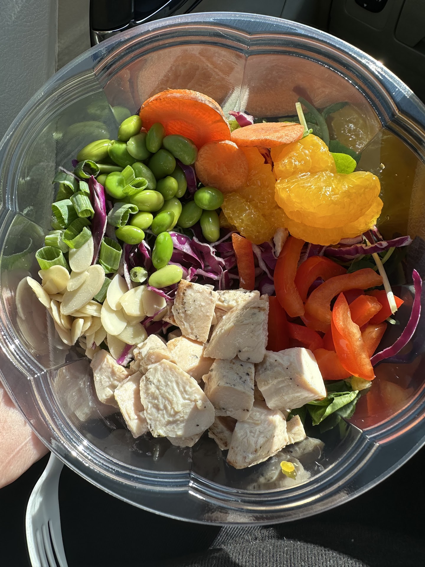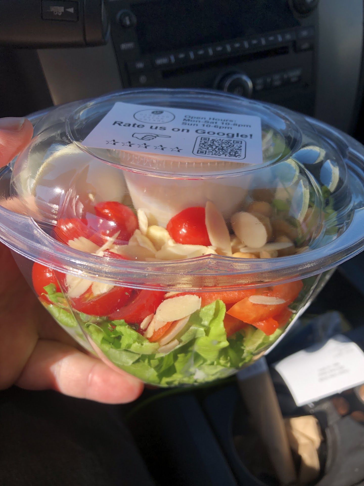 I love that when you drive up, you can see all the greens growing inside. We placed our order, then had a quick chat with the friendly young man at the window. But there wasn't much time for conversation because as promised, we got the world's freshest salads. It was so quick.
