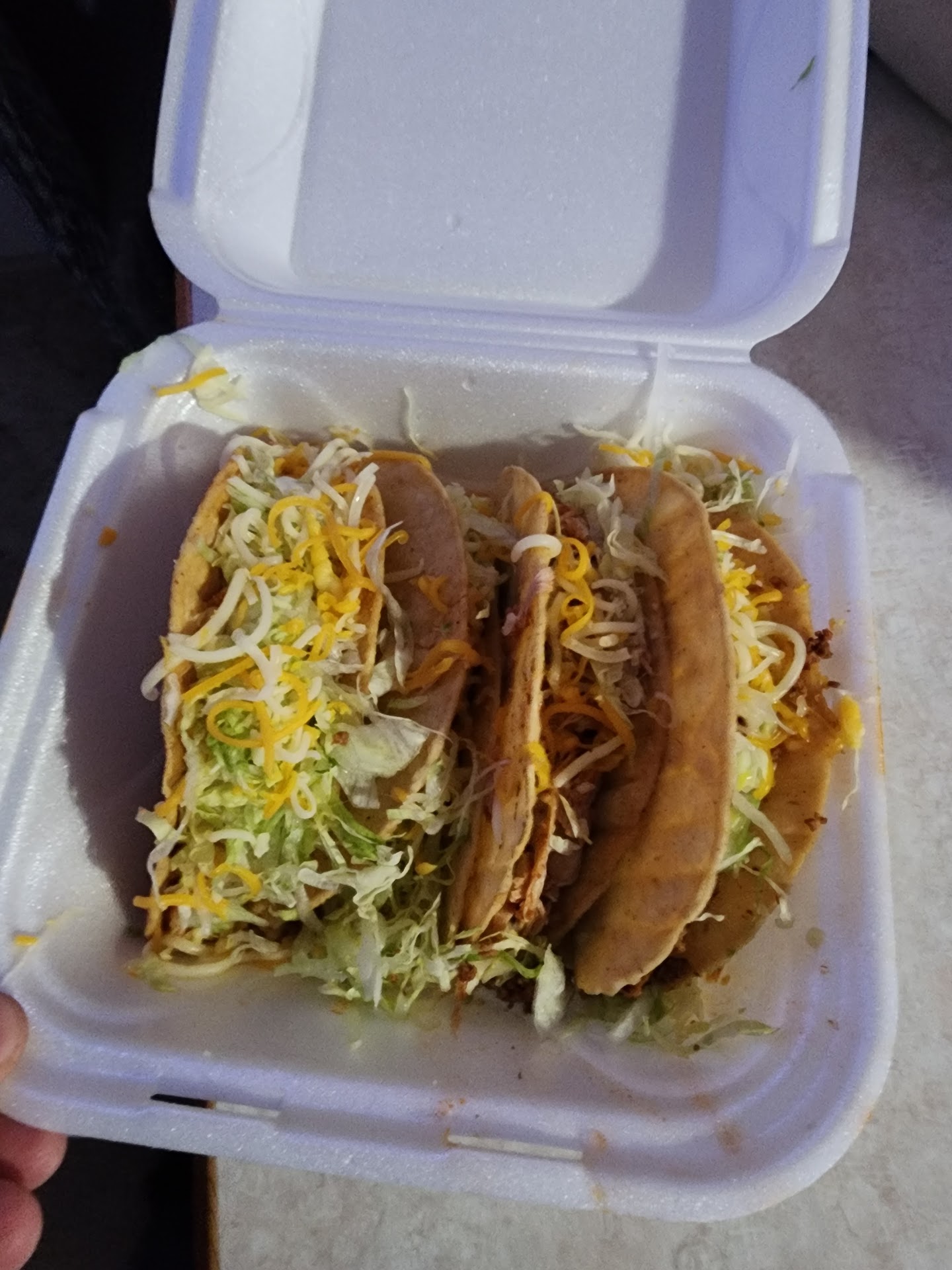 Read moreJust found out about this place when we stopped for gas the other day. We had 2 of the $0.99 chicken hard shell tacos. They were very good. It tasted authentic and the shell tasted like they were made in house.