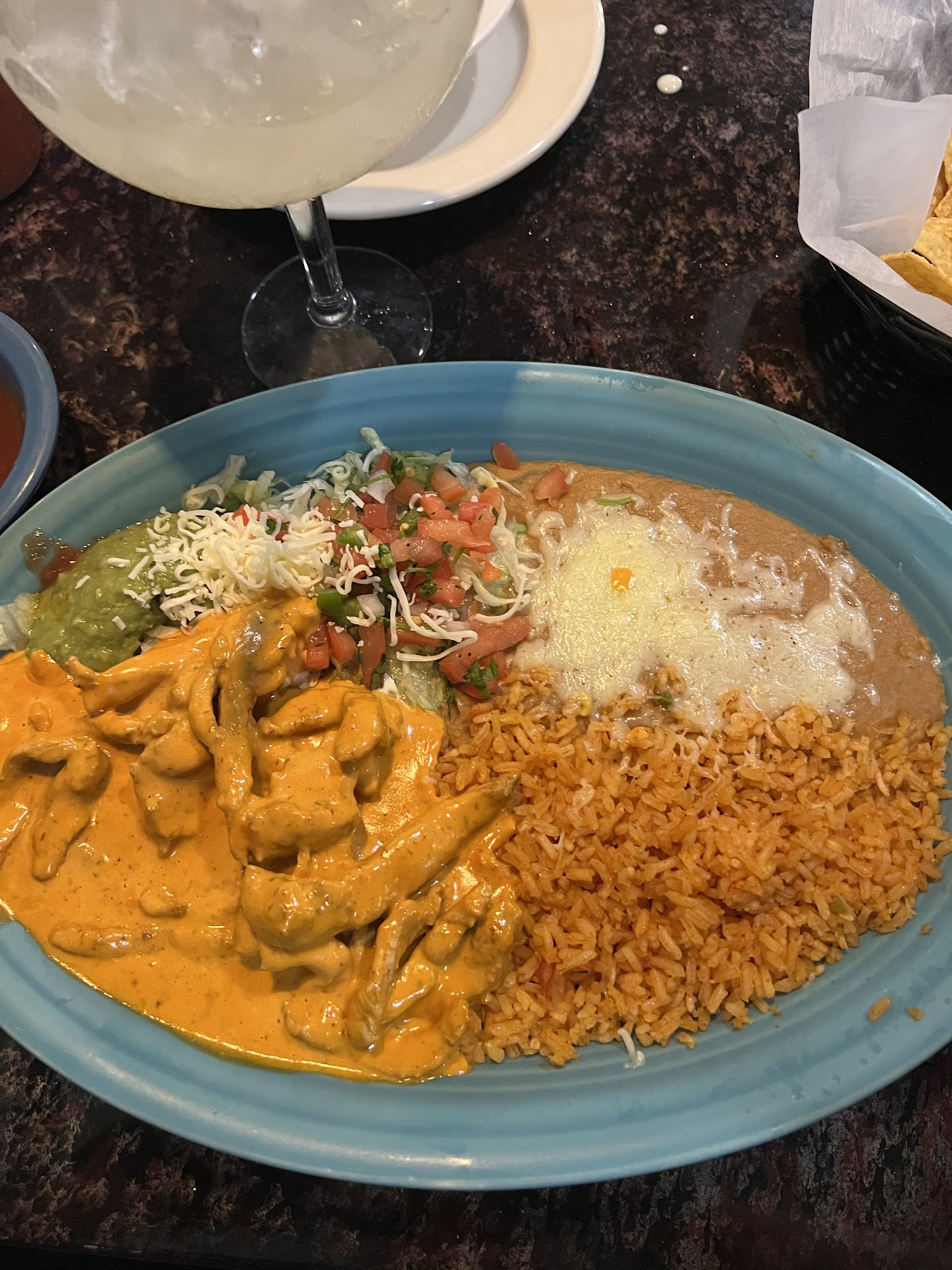 Food: El Azteca has the best chipotle sauce I’ve ever had a Mexican restaurant, nowhere else compares. Since I started going there, I now try the chipotle sauce dishes at all other Mexican restaurants and El Azteca has yet to be beaten. My favorite dishes there are the Chaca’s burrito, the chipotle quesadilla with chicken, or the pollo al chipotle (pictured). My partner always gets a cheese quesadilla with rice, with a side of queso (pictured), which never disappoints her as well. Some of the combination plates I have tried do remind me of a standard Mexican restaurant, their speciality offerings bring them up to a 5 star experience. Their lime jumbo margaritas are very good as well!