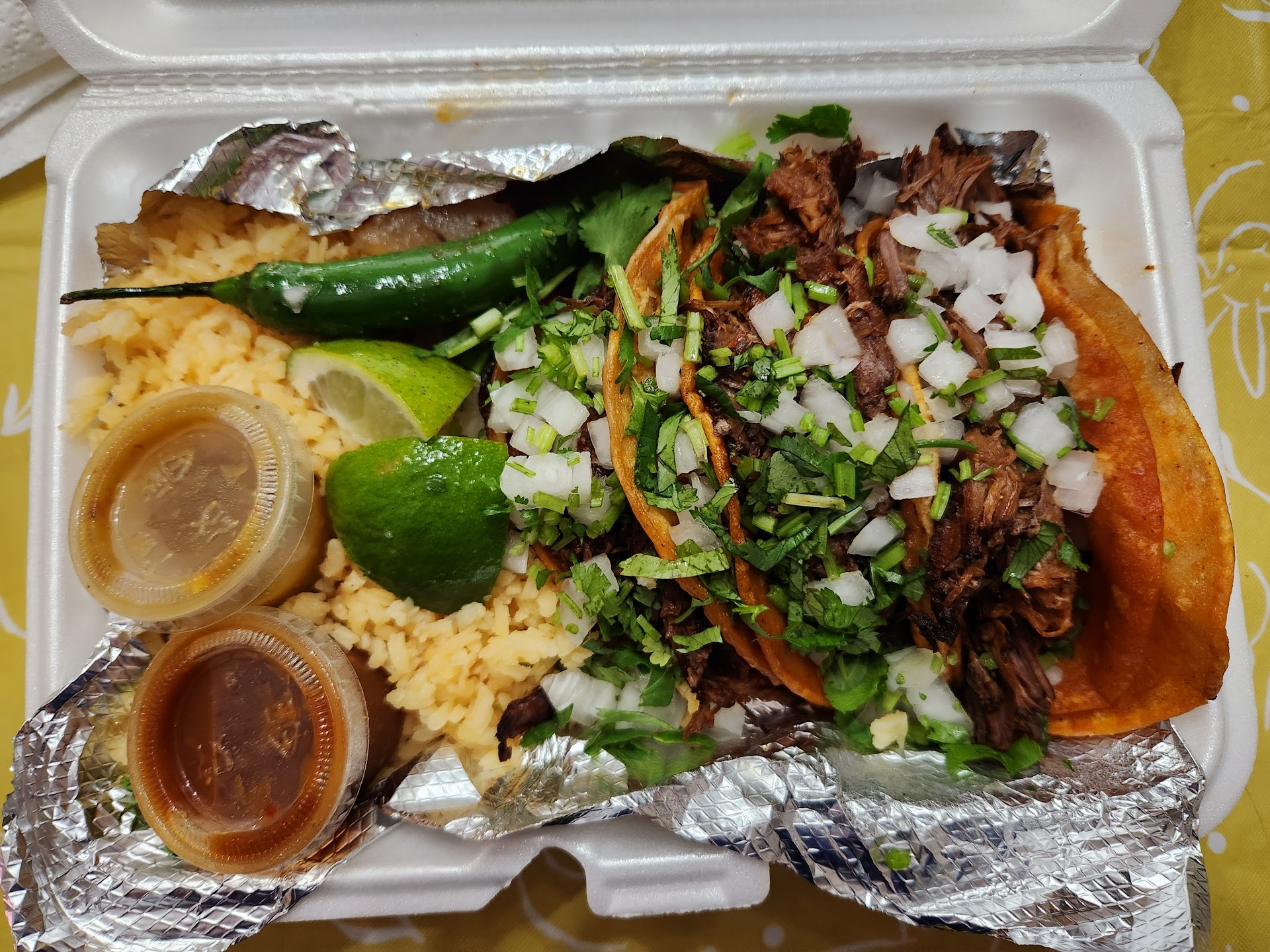 Food: 3.8/5 Quality: We tried the Birria Tacos and the Quesabirria. The Birria Tacos were very tasty and is served with a generous amount of birria broth. The beef was juicy and the taco shells were double wrapped and good. The Quesabirria was almost the same thing, just with cheese, also very good. The rice that came with it was alright, nothing special.