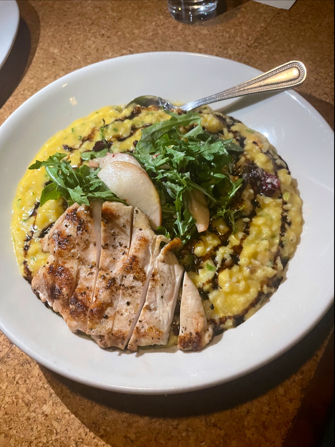 Then, there was the beautifully crafted chicken sandwich, bursting with flavor, nestled in a pillowy bun, and served alongside a zesty side salad that perfectly complemented the rich spices of the chicken. The side of corn salad offered a fresh, sweet contrast that was both refreshing and palate-cleansing.