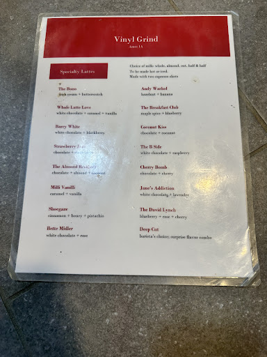 Read moreCoffee is awesome. The owner/barista was very nice and friendly to me. Gave me a card for a free drink next time I come in. The vinyl selection sucked...mostly 70's/80's pop and soft rock. At least the part that I saw. I wasn't able to get into the back room because there were a ton of people in there just socializing, not even looking at records. The space is very small and cramped feeling. I overheard the owner telling someone that they just got a huge shipment of records to add to the collection this summer, so hopefully there will be better selections soon. The reviewer who said the owner and his friend were being loud- same thing happened when I was there. They were talking about eating their wives' placentas. Very obnoxious while I was just trying to find some good records. I'll probably come back, but only because I want to see the...