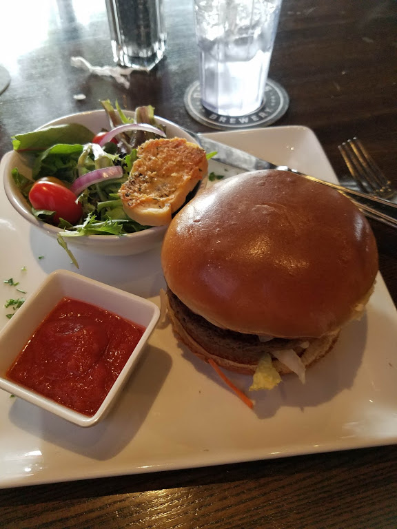 I had the veggie burger and a side salad with tomato vinaigrette dressing (I’d skip this dressing folks, it tasted like it was just ketchup). The veggie patty was made from black beans, quinoa, and roasted red pepper. The burger was ok, but nothing to really write home about.