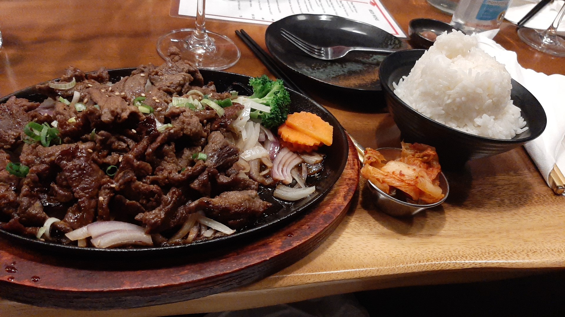 Read moreOrdered what was labeled as Korean bulgogi, it hardly tasted like it should. ( We have lived in both Korea and Japan for many years.) There was no marinade. It was flat, no garlic, sesame seed nor oil, no sugar, and very little if any soy sauce. The beef quantity and quality was good, however. The pork dumplings were not hot and the rice was not hot, tasty nor moist. The dining room was attractive. The restaurant closes at 9:30, one of the employees began to sweep and mop across from our table around 9:10. Another asked if we were watching TV. We were not so she turned it off. Our waitress was attentive but surprised our concerns were not brought to the managing attendant. We were excited by the reviews and the extensive menu. Sad, but it was a...