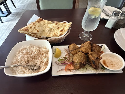 Read moreWe ordered 1 lunch special and split it. The lunch special was 1 curry, 1 Nan or Roti bread, salad, dessert, and tea for 1 price. We had the Kadahi Murg (medium spice) with rice, garlic Nan, green salad, Vegetable Pakora, an unknown dessert, and hot masala tea. Everything was excellent except the dessert. The Kadahi Murg was perfectly spiced, lots of sauce; the rice was perfectly cooked; the Nan was good and hot; the Vegetable Pakora was fair (the grease tasted a little old); the salad was a small, small amount diced cucumber, tomato, and onions (very good); the masala tea was strong and hot. The dessert was weird, not like any Indian dessert I've ever had. My husband thought it was just sour cream with something in it. It came on a large tray as seen in the picture. The portion size was generous because we were both full after sharing. The service was good and friendly. The bathroom was clean. This was just a hole in the wall next to a gas station, but so good. We'd definitely go back if we lived in the area. We highly...
