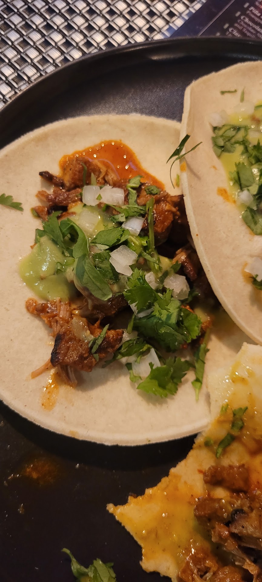 Ok, so I was really hyped about this place . On their website they advertise "AUTHENTIC" mexican cousine. Here's my opinion. It is not mexican food. It looks mexican and you can argue it tastes good. But is Not authentic at all. That's where the 1 star food review comes from. I ordered guac and chips, they did not have chips. I ordered queso fundido but it was hard by the time it came to us, they brought chips with this one but they were not corn chips and they were oily. I ordered birria tacos, they were salty and they did not come with birria consome. I ordered al pastor they were good but did not taste al pastor. The tortillas were straight up white corn commercial Tortillas, not home made, if you wanted an extra Tortilla it was almost 2 dollars for a single Tortillas that was not even home made. They only had 1 waiter for the whole restaurant, he was overworked and couldn't keep up with customers. The drinks were inconsistent in flavor. I ordered around 730 my food came around 9 i felt rushed because the close the kitchen at 930 for salsa night. It was overall not a great experience. The waiter did a good job with what he could. This is an honest review. Food is fine but please don't...