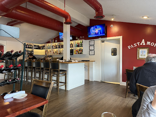Me and my family tried out Pastamore for the first time tonight. As we stepped in we could tell it was understaffed with only 2 people handling the entire front of the house. It took probably 3-5 minutes before we got seated. After that it was probably another 10 before we had a waiter get to us, and while there may have only been 2 people, there were also only 6 tables of guests at the time. The blinking of a lightbulb that was dying and driving us crazy, should have keyed us in to leave.