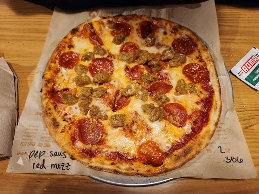 Read moreHonestly the pizza is tasty and the unlimited toppings is awesome . I went to there free day and was very impressed so much that I decided to get some tonight. Well I kinda wish I hadn't... There system needs improved. My pizza came out of the oven and sat in there cutting station for 10mins. I was getting pretty frustrated and the pizza puller was trying her hardest to make room for all the pizza I counted 4 people go to the cutting table and leave Finaly an older gentlemen made his way over and started getting the pizzas cut and ready. Well mine was the first one there 10 mins ago... And he cut everyone else's pizza before mine and sat there another 5 mins before my name was called a total of 20 or so mins i was there . he said sorry for the wait and I took my pizza and left . then tried calling a manager to let them know that they should change up there system. I tried 3 attempts all 3 I was hung up on my the automative system. I made home and went to eat my pizza it was cold... Not surprised since it away in the window for 10 mins... So yeah once their system is improved ill try again but till then ill go to rizos as they do the same thing and I'm already happy...