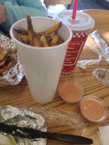 Read more5 Guys, in general, is fantastic! Lately, however, everything is super unorganized with management. Tyler left in the middle of a big rush to go to the bathroom and was gone for a good 10-15 mins at least. The ingredients for the milkshake machine ran out and I had to wait longer for my refund than I did for my food. By the time Tyler finally came back all the other employees were telling him to help us because we had waited so long and he said he didnât want to open the other register, so we had to wait even longer while new people were ordering. I want to clarify that all the other employees were very nice and helpful, but Tyler, the MANAGER, randomly disappeared during a huge rush and then told me that he didnât know of any way to get a hold of his manager. Train your managers better, everyone else knew what they were doing better than Tyler. By the time we got to eat our food...