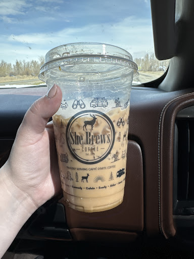 Read moreThe coffee here is extremely good, I get the 32 oz iced sugar free Bonilla latte that comes With 5 shots. It’s located just coming into anaconda with two drive through, I find them to be relatively quick with service and they always great me with a smile. It is hands down better than Starbucks and cheaper you get more for your money at she brews. They also have a large variety of other drinks and hot and cold sandwiches. Do yourself a favor and...