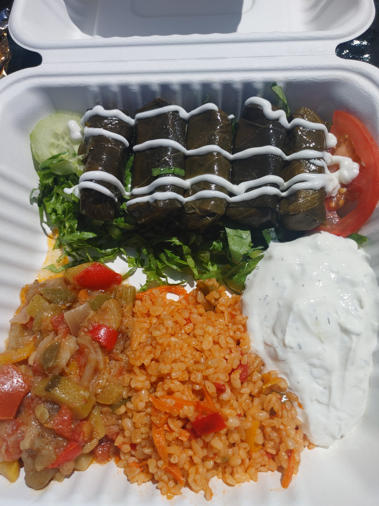 Read moreDelicious food and great service! I had only previously been to the coffee stand location. The Turkish coffee is so tasty. This was the first time we ate at the food truck. The owner came and cleaned the outdoor table for us and brought our food out. We got the platter for 2 and everything was amazing. To my surprise the bulgur and ratatouille were my favorite. Perfectly cooked and well balanced flavor. Pitas were warmed perfectly, Lentil soup was delicious, tzatziki was very flavorful, Beef was tender and seasoned well, salad was deliciously satisfying, falafel perfectly cooked and of course you can't go wrong with dolmades. And my coffee, amazing as always....
