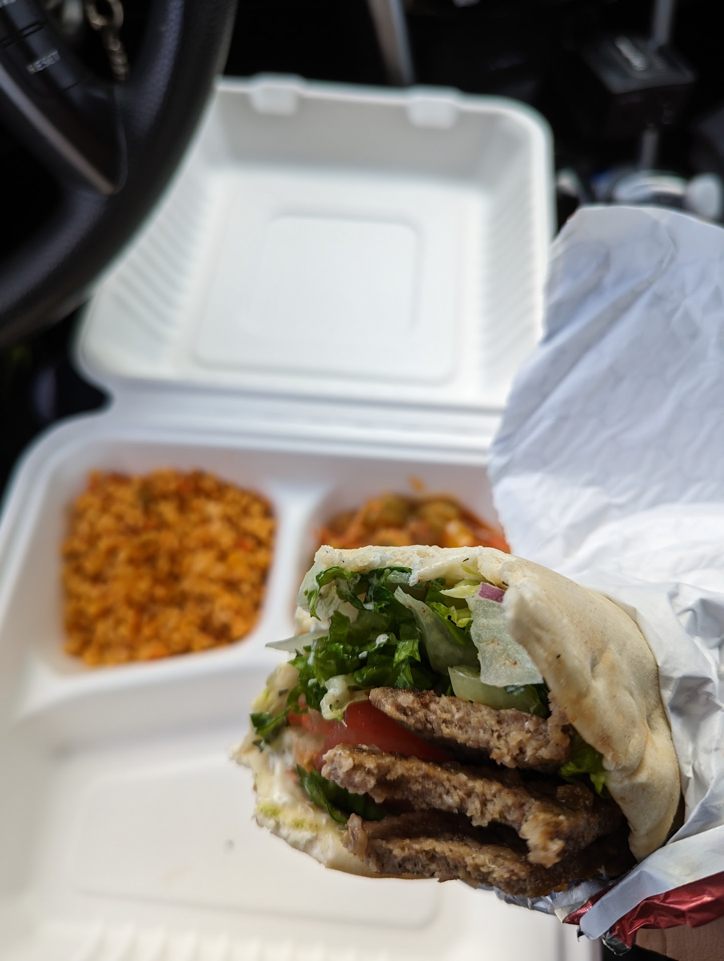 Read moreExceptional. Easy to arrive and park to enjoy outdoor seating. The man who greated me was charismatic. He made everything I ordered in no time and it was a fair price. The food I ordered was a gyro meal. It came with two sides and a soup-- all were so delicious. The food was full of geat flavors and texture. The soup had a wonderful almost floral after taste. And most importantly to me, it went over well! I ate everything (because I couldn't help not to) and it didn't feel like I ate a ton of bricks. These are quality ingredients. I will definitely return to try other menu items. And feel so thrilled to have such an awesome spot here in...
