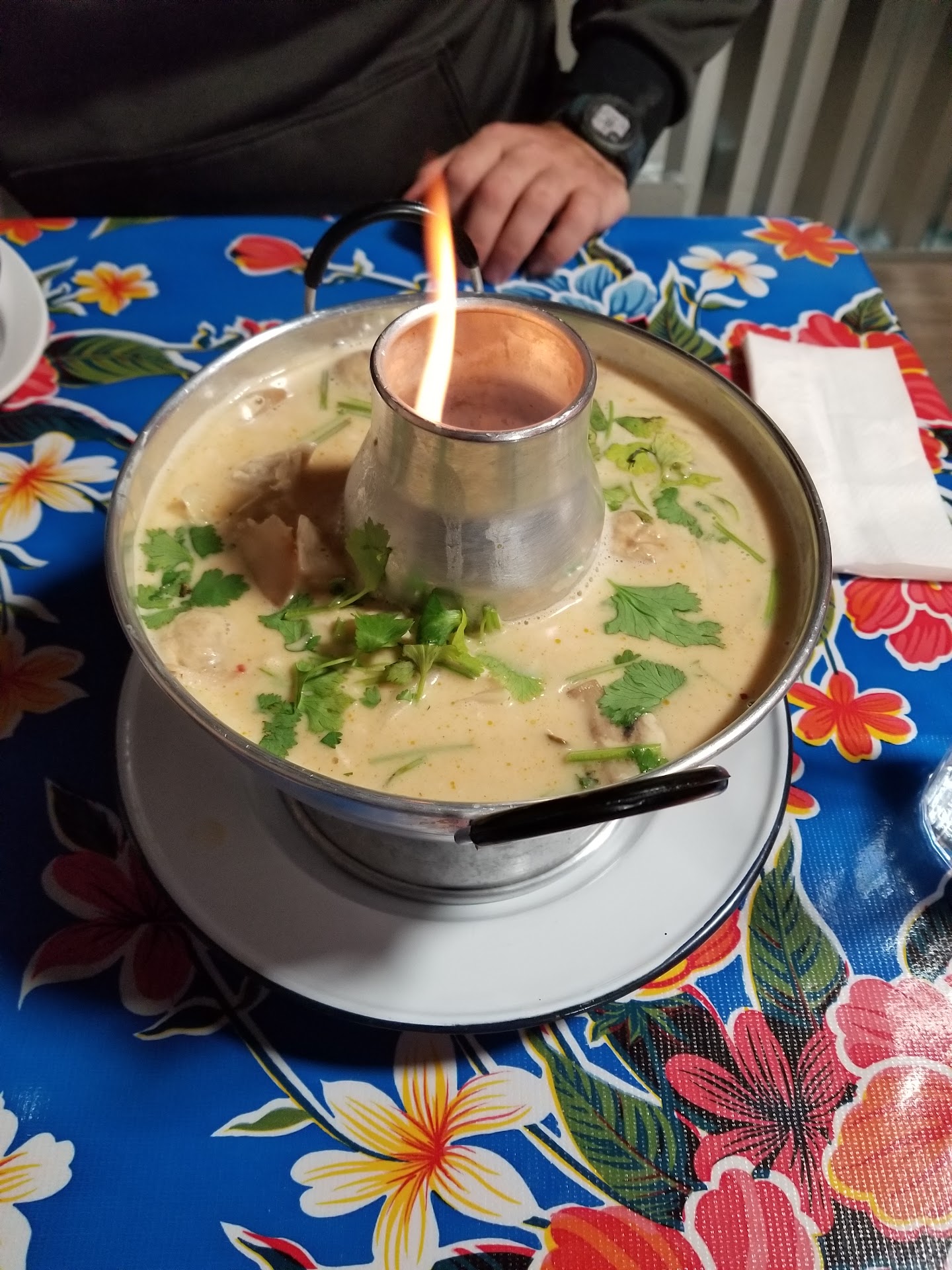 Read moreThe place is a cozy one with limited indoor seats but lot of outdoor seating. The place while open through out the day closes for one hour in the afternoon (2.30 to 3.30pm). Even though we (party of 4) went in at 2pm the person attending to us received us with a smile, and informed us about the timings and throughout the time we were there not once did he rush us. He was attentive, kept checking on us to see if we needed anything, and understood our vegan dietary restrictions well. Since there wasn't anyone else eating there at that time, our orders came out quick. Most of the food we ordered tasted good except the tomyum soup which was not that great. The fresh spring rolls and peanut sauce were amazing, and the roti dessert with condensed milk was light, flaky, crispy and juicy. Pineapple fried rice could have had more pineapples, but overall it was decent. We requested medium spice, and it was perfect. Our party finished ordering before 2.30, but ended up still eating past 2.30, and the person there was very courteous to allow us to finish our meals, while he started mopping the place up. Overall 5 stars, I would go to this place...