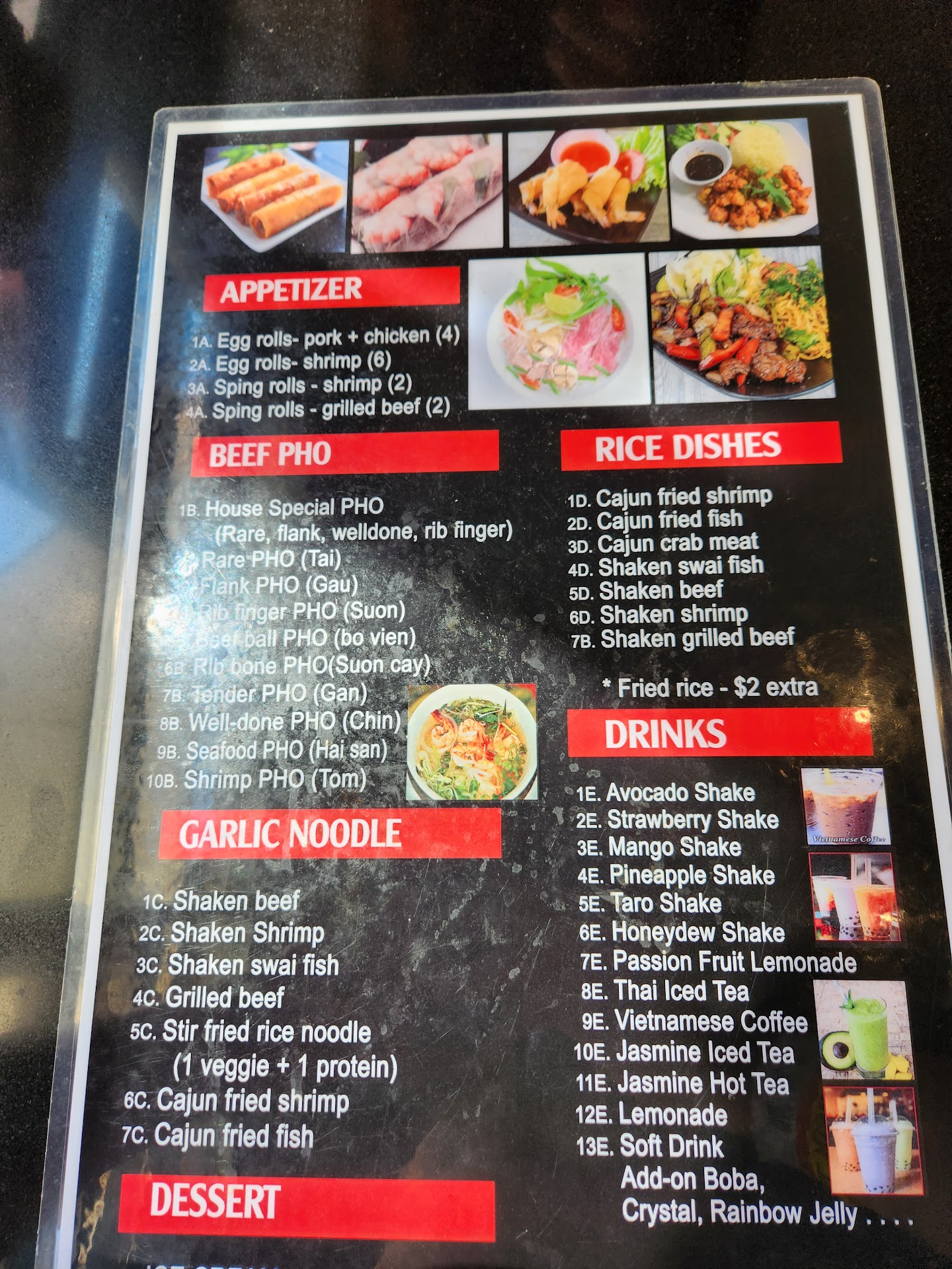 Beyond the pho, they have an amazing selection of seafood and grilled beef dishes. Their variety of drinks is also impressive, offering teas, shakes, coffee, and customizable options with crystal and jelly boba toppings. Don’t miss their dessert specials, including ice cream, which are the perfect way to end your meal.