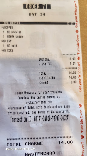 Read moreA terrible service and experience! I had two T-mobile coupons to redeem at the store. I am conscious that when redeeming it, I have to spend $1.00 for each coupon to get the free whopper. I’ve redeemed the same T-mobile Whopper coupons a couple of times before, and Always I add cheese, so I spend the $ 1.00. Multiple times employees have told me that I can choose whatever I want as long as I spend $1. The lady was VERY rude because I chose cheese for both whoppers instead of something else. Actually both cheeses was more than $1 and still she was very angry because she wanted to obligate me to get something else and NOT the cheese. She told me that If I didn’t like I could complain online. She was very rude and argued more than three times and she also said that her partners were loosing money when I spend $1 in a cheese instead $1 in any other item.It doesn’t make any sense. It was at 8:50 pm in 12/27/2020. She had...