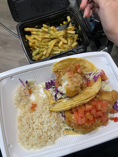 The food we had was okay. I liked the menu. They had a variety of seafood to choose from and you can get them on a salad, wraps, rice and tacos. El Hubby had their GIANT SHRIMP $13 plate over rice. Shrimp were large and perfectly grilled. It was very good. But the rice was a lil tough. I had the FRIED CALAMARI and FISH $10 with coleslaw and grilled zucchini. It was on the dry side, but the tar tar sauce helped a lot. The coleslaw was very bland. My fav was the grilled zucchini. I like the grilled flavor, but I can make that at home.