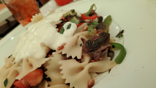 We decided to order the "from the Earth pasta" which has "sauteed garlic, toasted peppers, mushrooms, fresh basil, mozzarella & pine nuts. The basil was very fresh and fragrant, and the mozzarella was fresh made mozzarella (the gooey slices, not melty pieces). Overall, this dish gets a 8/10.