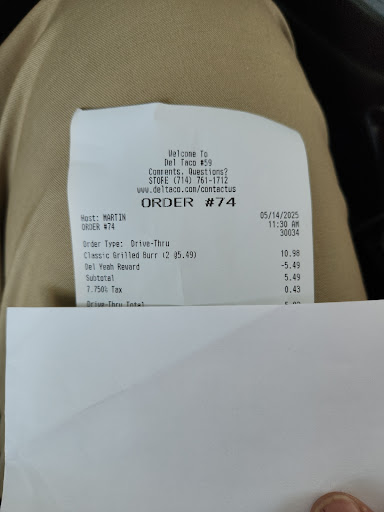 Read moreThe quality of the food itself isn't bad (for Del Taco) with the exception of the super skimpy taco Tuesday tacos. Howeber that being said, I only continue to go to this location because It's the closest by about half the distance and at 2AM closenessexceptional service. Almost every employee sounds like they hate their job, I generally have to repeat some components of my order every time, sometimes repeatedly, and I would say at least 1/3 of the time something in my order is still incorrect/missing. While I realize this is a food service job and not the Ritz, I always say please and thank you, have my form of paymemt ready by the time I get to the window, never get irritable if it takes them a while to get to taking my order, I have to repeat it, or if I'm asked to park and wait for my order. I don't want my butt kissed, but faking a smile rather than making me feel like I'm taking up their time would be nice.