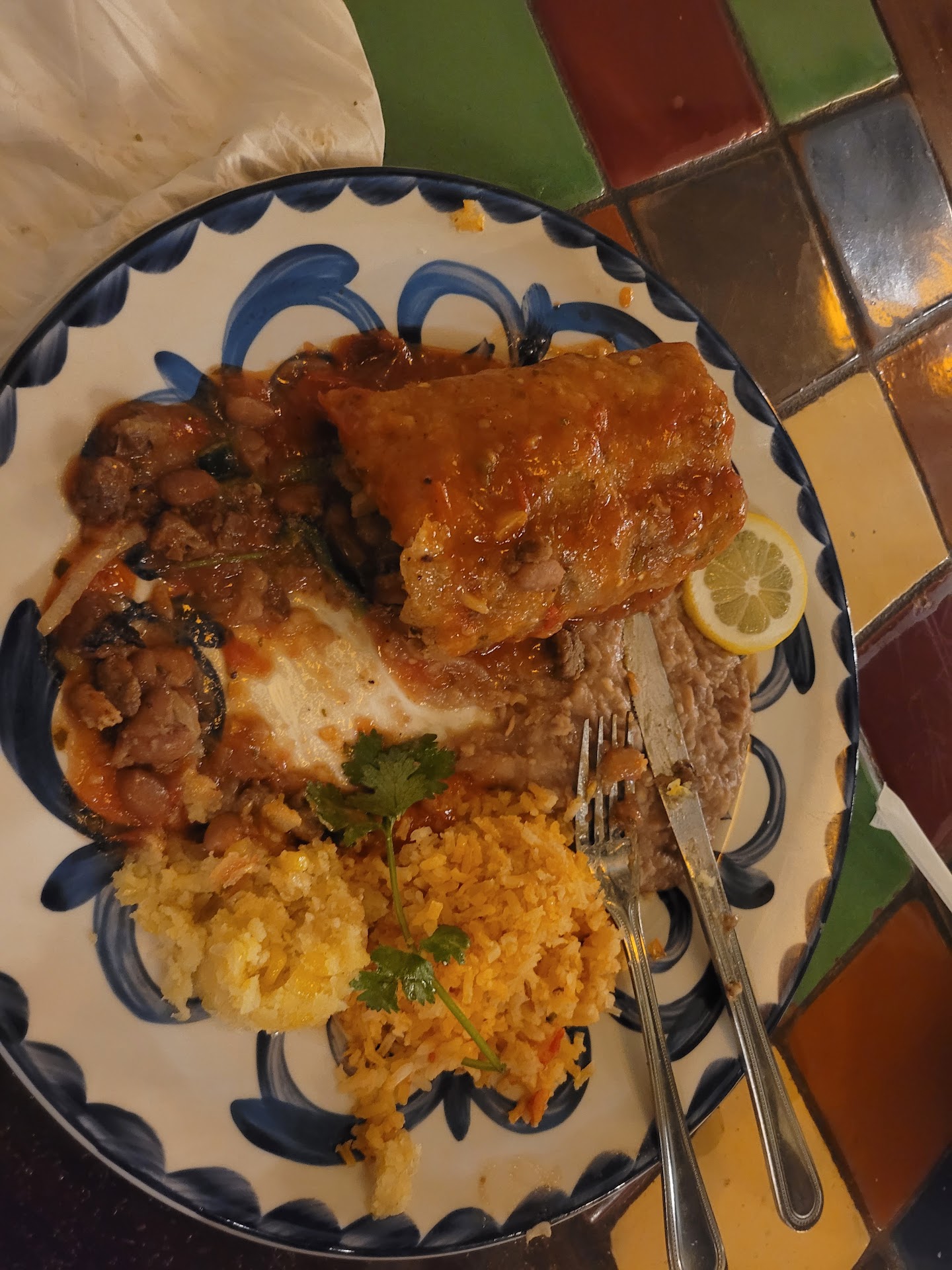 Read moreI orderer chimichanga burrito which was 9/10. Only down side was I ask for Zero cheese on anything and they still put some on my order. I don't know if it they put it on the bean but this is no excuse for this. Also we ask for a hotter sauce for our chip however the guy brought it to us upon bringing our food which was pointless because we had ate the chips and sauce Another thing was we order a salad and the guy said it would be an additional charge for lettuce which I didn't mind the additional charges however I didn't appreciate his tone he said it to me. We had to stop by for dinner because we had to leave back home. The guy didn't check on us to refill our drink or if we want mor3 alcohol drinks. Another down side their table were sticky which it also had little bugs and fruit flys as well. After we were done we ask for the check which he did bring however he was staring at us walking around for 10 minutes and we tried to inform him we were ready to pay and didn't come. We had to walk to him to pay. We did leave a decent tip which honestly he didn't deserve. To finish this off both restrooms available were extremely dirty with no paper to dry your hand and the sink was wet dripping with water to the floor. We were nice to the fellow however visiting out of state coming here was a mistake. I guess the 1,748 review don't really give the creditablity of all of the customers feedback I thought was going to received! I won't be back here on next visit...