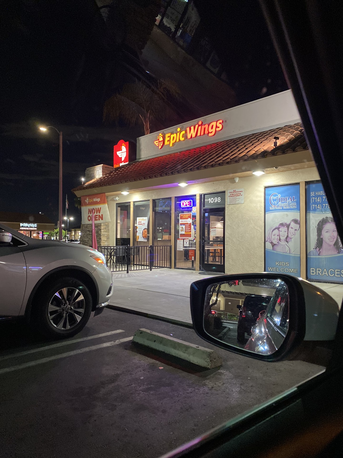 Man I was really looking forward to eating some wings today. I drove all the way from Orange California to this location in Anaheim took me 3 freeways to get there (and I have 5 different wing places to choose from within a 2 mile radius from my house) and when I finally got there I ordered the ten wings from the chicken olny section, listed on the menu, however the owner said they stopped offering that a couple of days ago and I said well you know I drove all the way from Orange and it's advertised on your website and on your Google search results, so you know I was hoping you would honor the price He Didn't even offer to honor the price he offered me the combo for 13 almost $14 which Is not a good value meal for the price, look you only get 6 wings 2 bread sticks a couple of carrots and celery and a soda, sorry that is not worth 13 almost $14 as it's priced on the menu. I'm really disappointed that the owner/manager would not honor the price that was advertised And when I Ask for chicken wings only to purchase, he said they don't even offer wings only options, they only offer to increase the amount of chicken wings with their combo meals so you jump from $13 for 6 wings to $24 for 12 wings now the way I do math that's about $2 a wing and that is just way too expensive for simple chicken wings. In Buffalo New York, the way they used to do it was 10 cents per wing now granted that was a few years ago so now there may be 50 or even 75 cents per wing but not $2 per wing that's a ridiculous price even in these inflationary times. So I think I may have to look for a Different wing place Good Thing there is a new wing place opening up near MY HOUSE and this place is on the corner of Chapman and Tustin Avenue right behind the Starbucks they look to be True chicken wing place it's called Hoot's Wings Yeah I know good luck with that name and color scheme, them not getting into a lawsuit with Hooters, but that's not my problem, anyway I'll try them next time Instead of driving all the way back out to Anaheim. Oh by the way there was a Popeyes chicken across the street so I did get my wings after all, maybe not ad good as Epic wings, but I quess I'll never...
