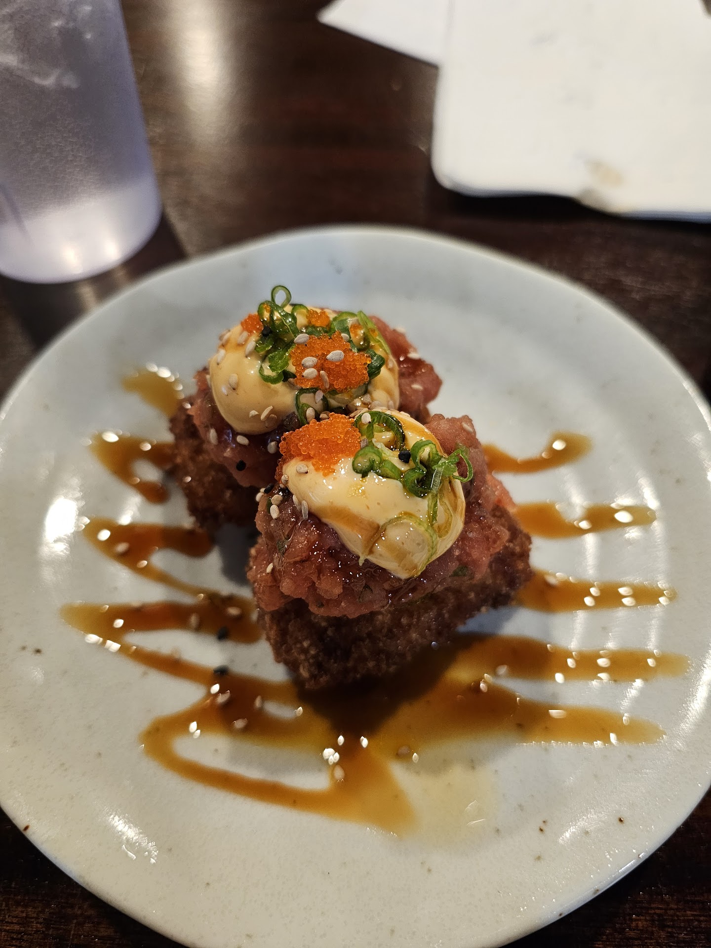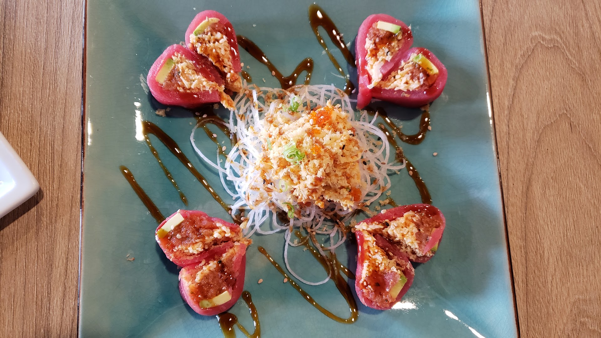Read moreI found this place highly recommended online. I arrived and it was Happy Hour so we ordered a few things from that menu and the regular menu. We were pleased with our food selections. My water glass was never empty! That is impressive because I would have to flag a server down to get a water refill at other places. The server was attentive to us. The restaurant is clean, spacious and air-conditioned. The rolls are fresh and nicely presented. On their appetizer menu, try the Spicy Tuna Tacos. I never had anything like it before. It was amazing! The Sunrise roll was on their Happy Hour menu and it was great! The Salmon Lover roll was also a Happy Hour item...