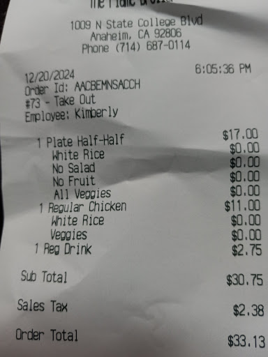 We "grew up" in the Fullerton area near one of the original Flame Broilers" began. Tonight the half and half dish chicken and meat were dry, perhaps being pre-cooked and cooked again. This is something we'd cook ourselves and are familiar with not only how we'd cook it and how the original Flame Broiler would cook it. This shop was notably empty on a Friday night at 6pm.