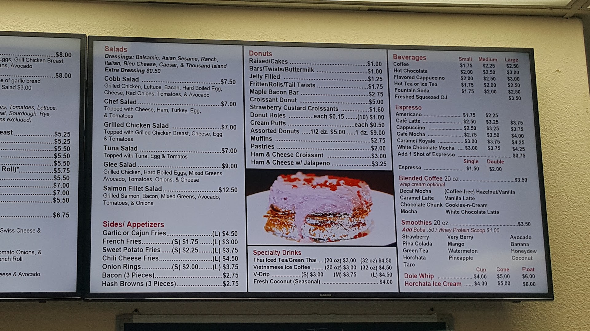 Read moreWe live right down the street and have been wanting to check this place out bc they advertise Dole Whip! Finally stepped in today, but didn't get the Dole Whip 😂😂 They do have a large menu with many choices. I tried the Bagel Lox and Thai tea, my bf got a plain bagel and a medium coffee. Food came out relatively fast (they weren't too busy atm), mine was pretty tasty :9 Got it on a plain bagel and the bagel itself got a bit of sweetness to it that goes well with the cream cheese and salmon. The Thai tea was standard, so was the coffee. If you're lactose intolerance or vegan, be sure you ask, they have soy milk and non-dairy creamer! (The non-dairy creamer is not vegan, however. And we didn't ask to see if they could make the Thai tea or their smoothies with soy milk, will find out next time) The portions are fair for the prices; they're right in the middle, not cheap but not too expensive. Giving them 4 stars for now bc I did enjoy the experience, but they do have a lot of food that I wanna try and one bagel lox does not a 5 star review make 😂😂 I do recommend them for the service, the many food choices, and the convenience if you live...