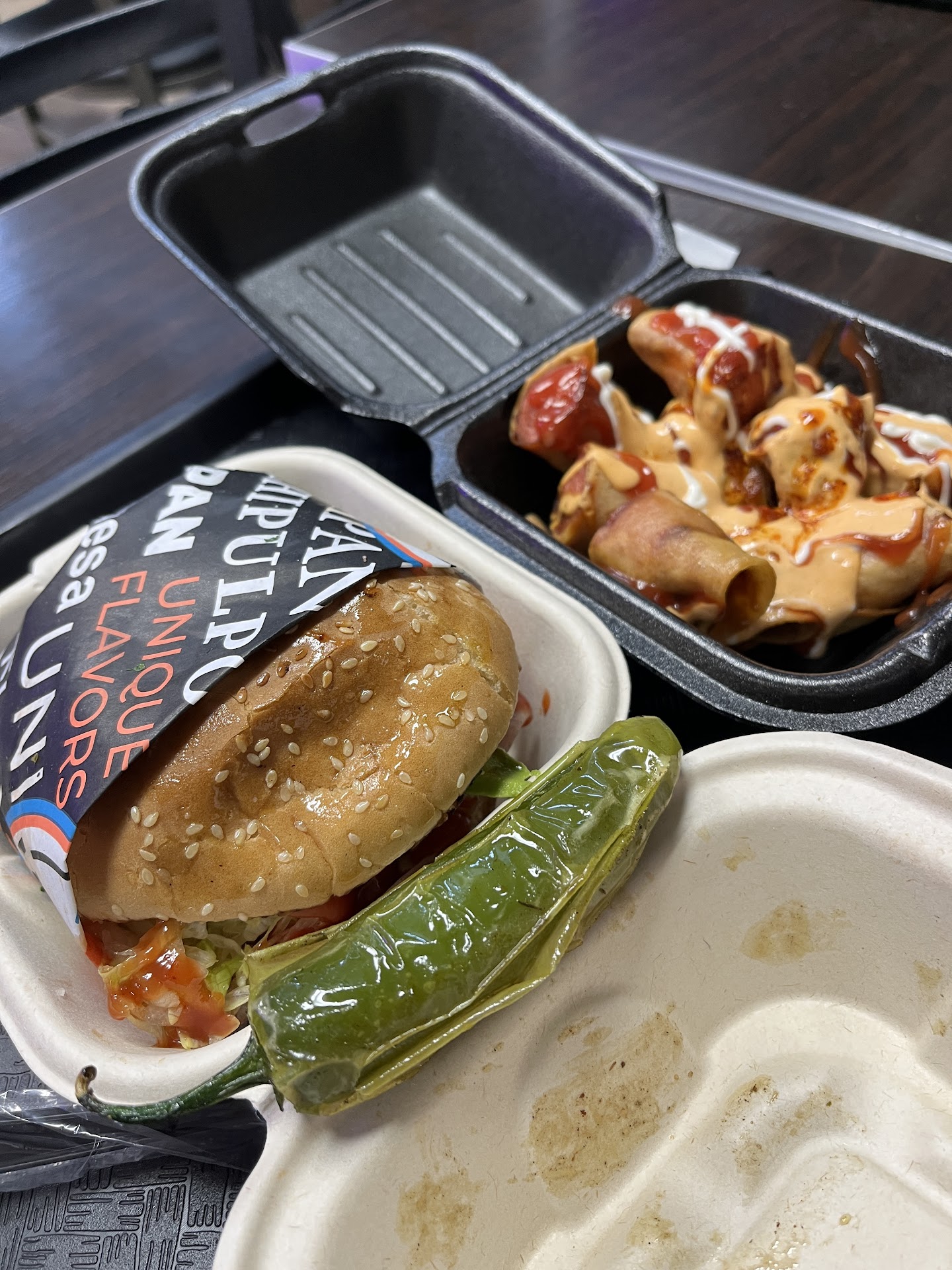 Wife wanted to try some place new and suggested this place, she had seen the TikTok video. Not knowing what to expect, I said what the heck. It's a small shop with a dinning room. I didn't know that it was a food truck and went restaurant. This explains the small menu. Now this isn't a bad thing because you have a few things to choose from and in a couple of trips you can basically try everything on the menu. I decided to try the Hamburgessa Urapan (meat,ham bacon,sausage, pineapple,cheese, chili sauce), wife got the BGO (bacon grilled onion). Mine was messy but good. The heat didn't come through till about 1/2 way through the burger but was enjoyable and didn't over power the other flavors. One thing I didn't care for was the sausage. When I think of sausage I think bratwurst, linguiça, Italian sausage, kielbasa, etc. This was more of a hot dog, which it technically a sausage but not what I expected from such a complicated burger. The BGO was good and the way they stack the ingredients made this burger. The bacon, cheese and onions were between two meat patties so everything melted together. It was a good burger. We ordered plain fries which were crunchy and hot (temp wise). drinks are only bottle or can, which is a trend with this type of restaurant. A horchata or orange bang would have been awesome. Place is clean and the people are very friendly and helpful. Give the place a try I enjoyed it and will...