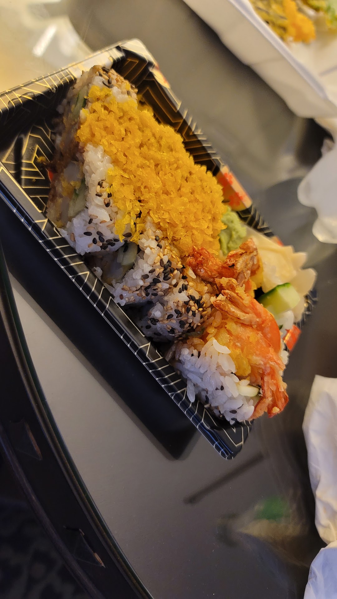 Double shrimp tempura roll - The shrimp tempura was tasty and the crunchy cucumber was a good balance with the eel sauce. It wasn't overly drenched in sauce but just the right amount that all the components complimented each other and you didn't get sick of the taste.