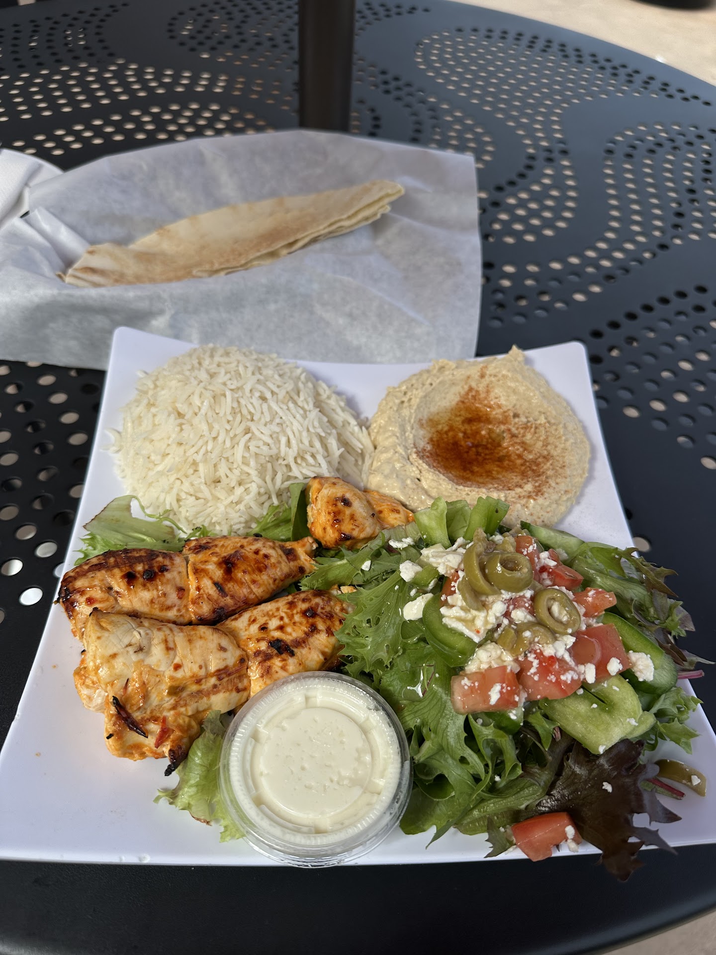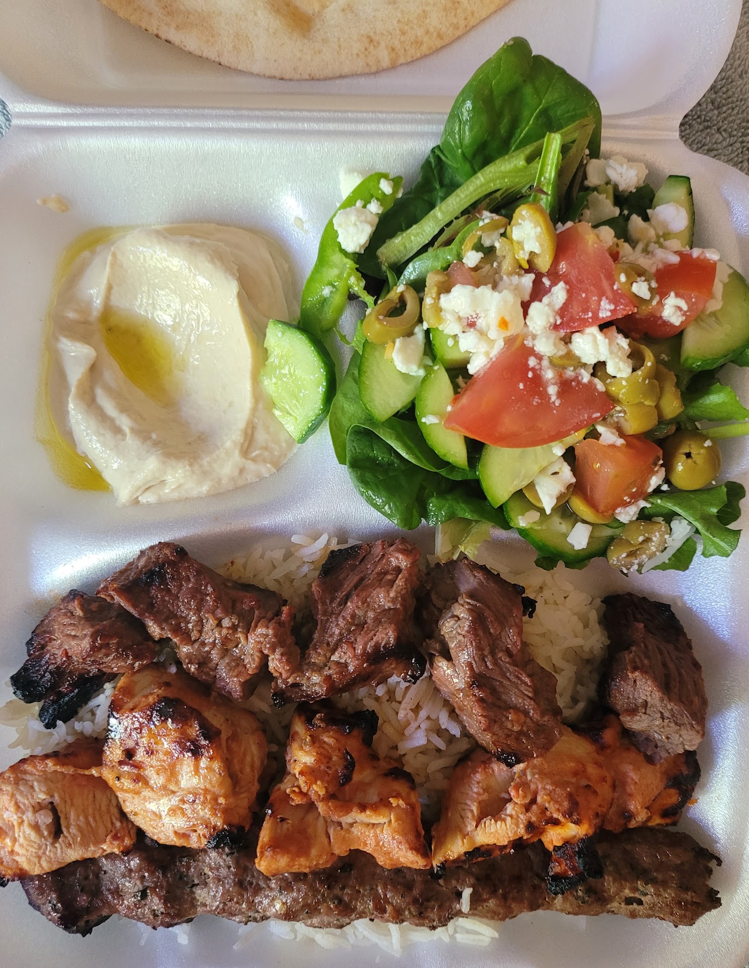 Read moreThis place is now called Lazeez Eats, previously Hummus Bean. My husband and I ordered around 4pm, hardly anyone was there so we were able sit outside and enjoy the 70 degree weather. I had the beef Kabob plate with rice, greek salad, pita bread and hummus. The meat was tender and tasted so good. My husband had the meridian burger and fries; he loved the burger and the fries were fresh however too much salt was added on one side so next time we will order with no salt. Cucumber mint was refreshing and as well as the blackberry mint. Customer service was on point; we were greeted right away and when we were leaving the cashier/hostess was so nice and gave us lids that they didn't...