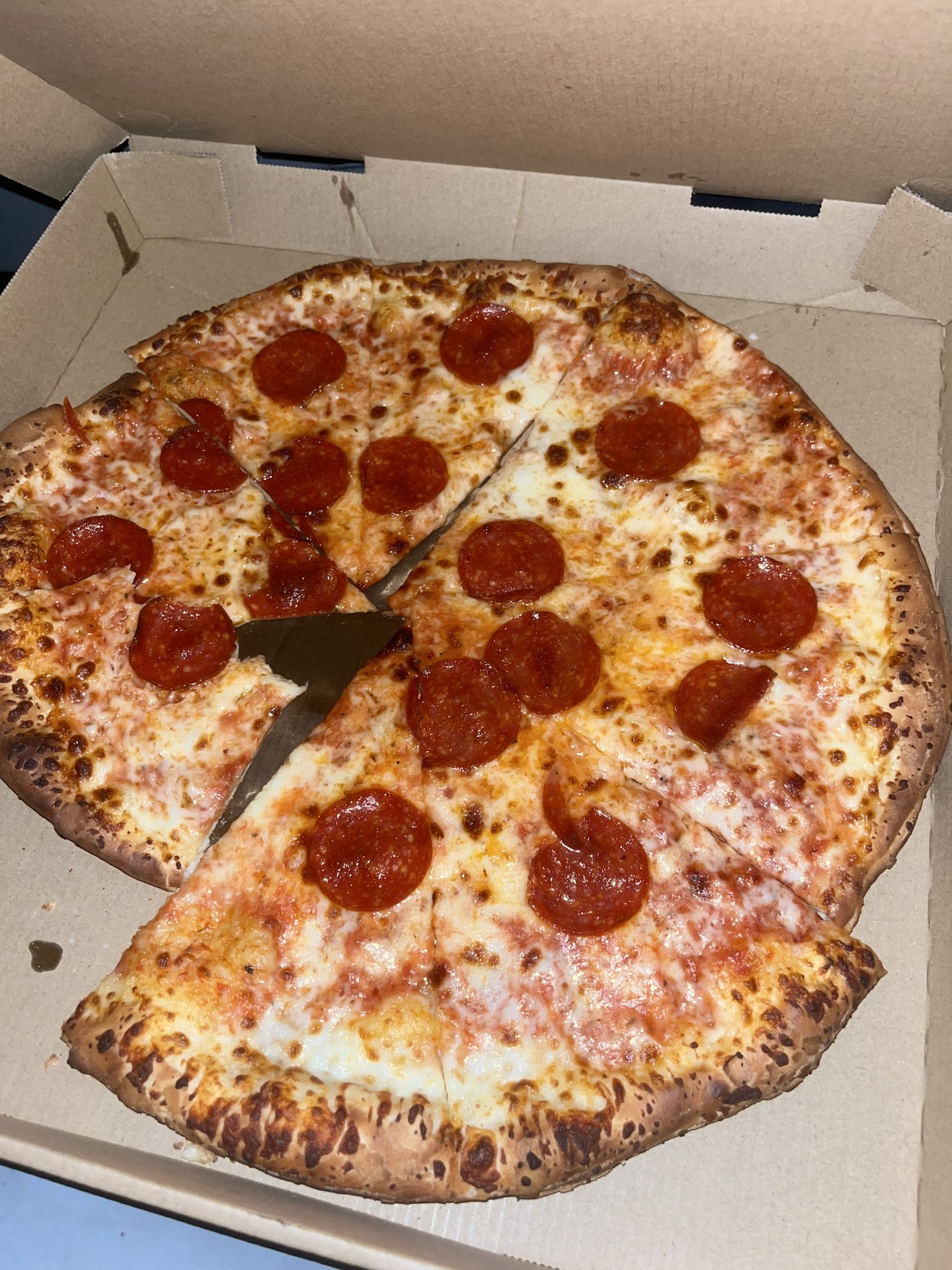Read moreIt's been a off and on going to their business. Mostly it's my wife and I are just busy. But they kind have to cook a thin crust and there are times it's some "floppy" when we order thin crust we don't ask for alot of toppings, just (cheese and mushrooms) so i don't see how at times they make it not right. Other than that.. it's been a good experience. Also it's so difficult to hear the person taking the order because they have music so loud and they still have the plastic covid at the counter. It's their business and they can put whatever they want, but i can't be the only person who can't hear them talk behind...