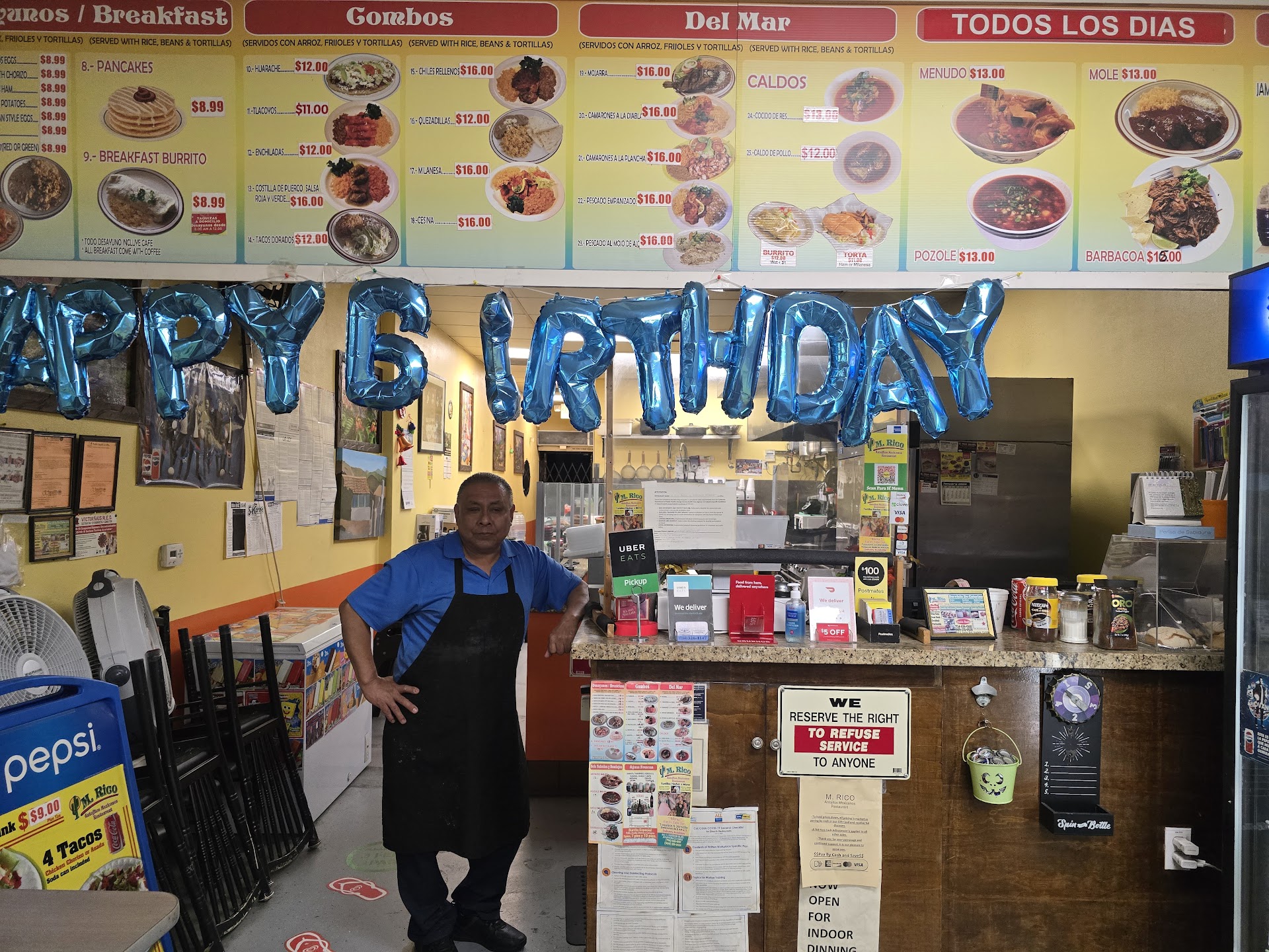 A full menu of Mexican chow plus weekend menudo, served at a counter in a simple cafe setting.