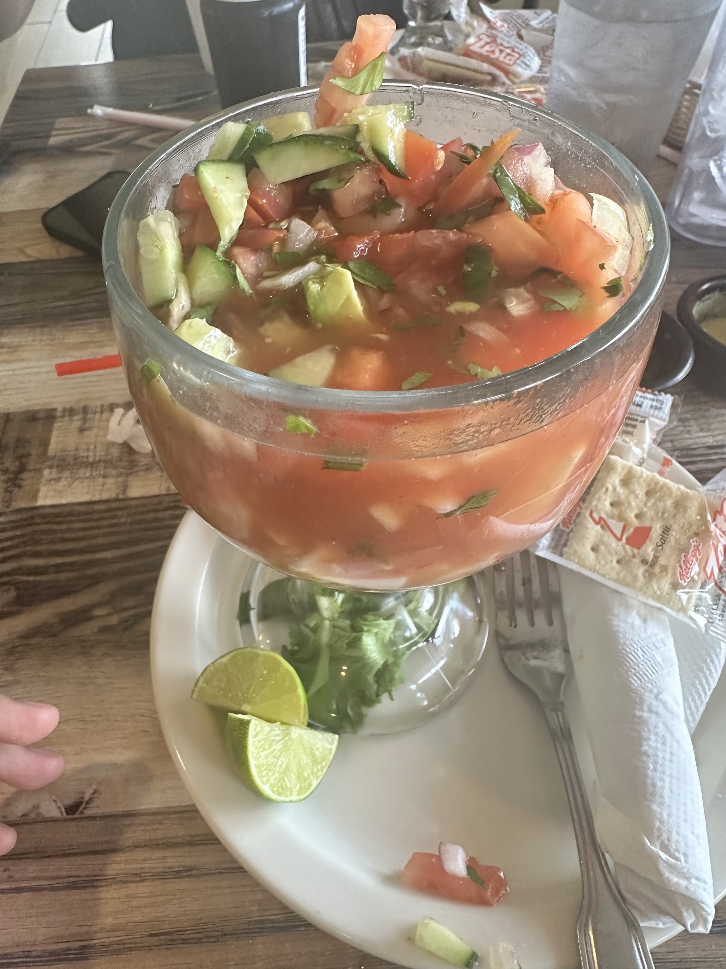 The ceviche was fresh and good. The vuelve a la vida was served cold, which I’m used to it being served hot but it had good flavor. All of the produce (tomato, onions, cilantro, tomatoes, lime, cucumber) was freshly cut and fined cut. The avocado was on point.