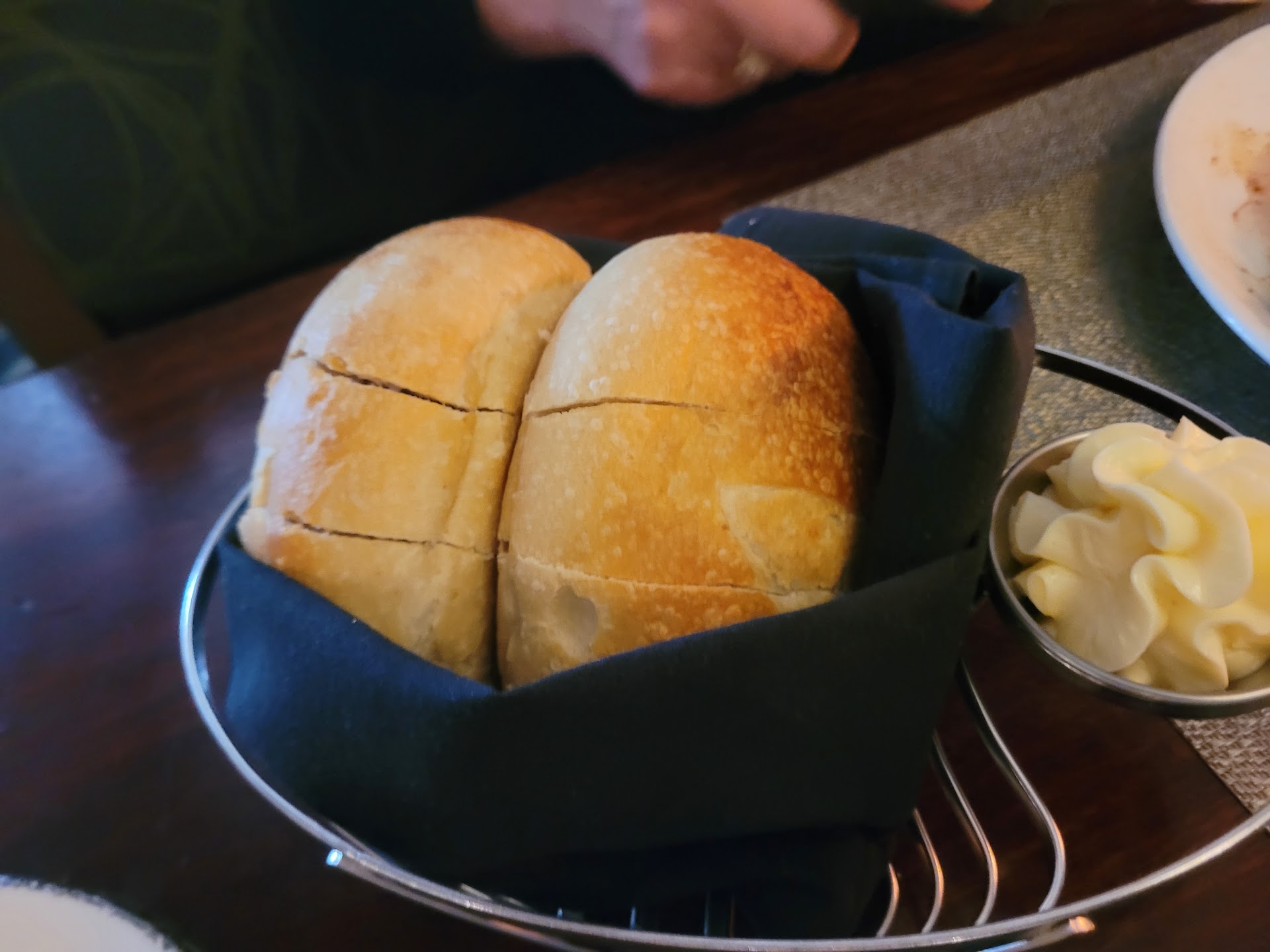 The good: The bacon wrapped shrimp ($16) was delicious but it would have been better if it was six pieces, not four (4), to share. The Wedge salad ($12) was a good portion, and the Blue cheese excellent (not like another review I saw here) . The ribeye steak was delicious and tender ($47), BUT the $32 ribeye at Roadhouse grill is bigger and just as good. Server Tyler was pleasant, friendly, helpful.