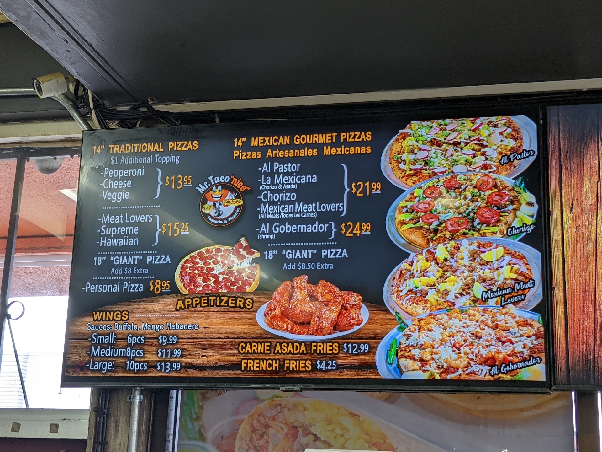 So a friend of mine suggested Mr. Taco Nice (even though I've passed by it multiple times prior). She said i should get the MEXICAN PIZZA. And yes, i had the same thought as you're having right now; who gets pizza at a Mexican restaurant?
