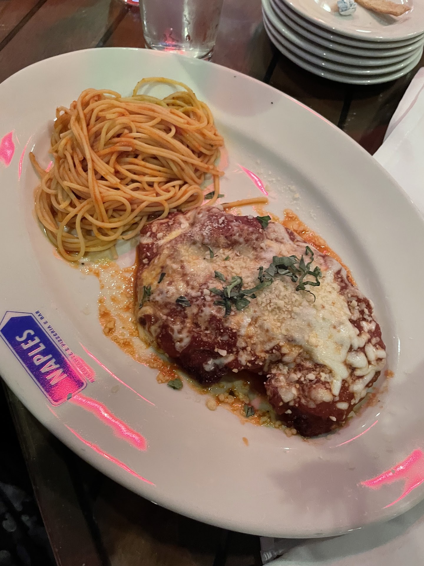 After our Disney trip, we went to a restaurant on the way home in our travels and for 2 full meals (enough for leftovers) for 2 people and 2 fountain/tea drinks we paid $26 total. Naples Italian Ristaronti is way over priced, the food and service was just okay, the food did come out fairly quick and was warm. That was at least good. But, the food itself was nothing special. This was a one and done experience and...