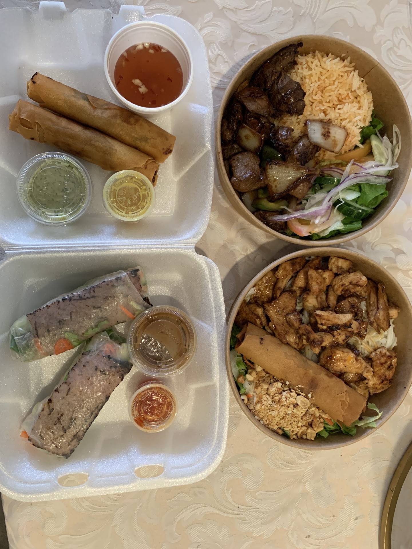 We tried the: V1. Grilled chicken vermicelli B1. Shaken Beef (rib eye) A4. Summer (pork) egg rolls A6. Egg rolls