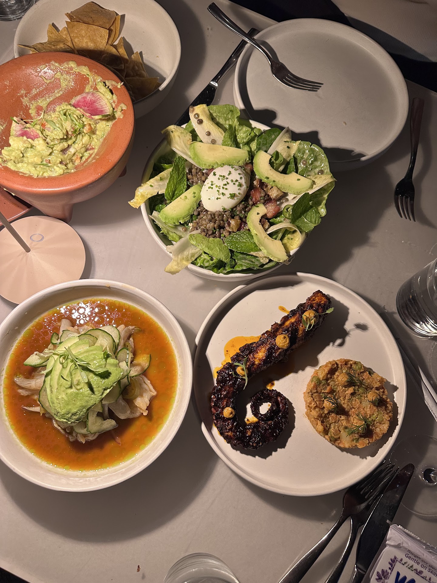 I'll just highlight the notable things: The esquites was easily the worst esquites we've ever had. After my first bite, I knew right away that this was just cheap canned corn. The kitchen staff didn't even bother to drain the canned corn they used, so the entire bottom of the esquite was just water. Absolutely unacceptable. Also, the flavor was just meh. Bland. The $64 ($64???? What is this? Mastro's??) carne asada was terrible. We asked for it to be cooked medium. And instead, what we got was an extremely thick tough to chew brick of meat where one half of it was cooked raw rare and the other half was cooked well done. Apparently, someone in the kitchen doesn't know how to cook steak. And the carne asada steak was extremely thick, tough, chewy, and difficult to slice with a steak knife. The halloween "special" drink was BAD. There was barely any alcohol in the drink. It was mostly just orange and pineapple juice, with the tiniest splash of alcohol, and a way too salty foam on top. For $18, are you joking? I could only force myself to drink barely half of it before I couldn't take it anymore. It was that undrinkable. The fish empanada with squid ink masa was just ok. Not terrible. But also not great. There wasn't any "pizzaz" in the flavors, just pretty bland. And this was also $18 for just one literal empanada. Yikes. An expeditor who dropped off our carne asada plate, walked up to us with the dish, asked who had the carne asada plate, and then proceeded to just stare at us. He basically waited for us to move dishes and cups out of the way for him so he could place the carne asada plate down. Wow. Really? And then what was even better was he set the plate down crooked and at an angle, so the wooden board (that the carne asada dish came served on) was at an awkward angle, with pieces of steak rolling off the board onto the table. And the expeditor just walks away. Unbelievable. We asked an expeditor if we could get some ketchup. They said "sure" and didn't come back till 10 minutes later, only to tell us that they ran out of ketchup. Our server then said, just wait a sec, i'll go find some. Then our server comes back with with what looked like the bottom of a ketchup bottle just splattered at the bottom of the cup. It was probably enough ketchup for a few french fries? What was kind of sad was the server then later brought us a full bowl of ketchup, claiming she had to go to another restaurant to get us ketchup, but we were already finished with our meal and ready to leave. I appreciated the effort, but why even bring it to us when we were clearly finished with our meal? Believe it or not, the ONLY thing that was actually kinda decent was the kids quesadilla.